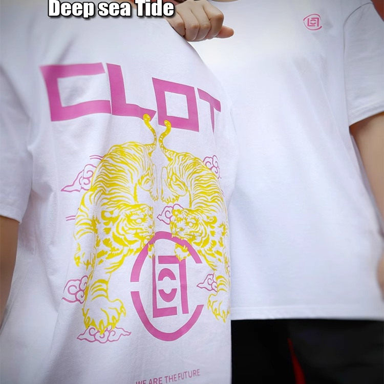 clot潮牌陈冠希夏季新款老虎印花宽松休闲半袖情侣纯棉男t恤短袖