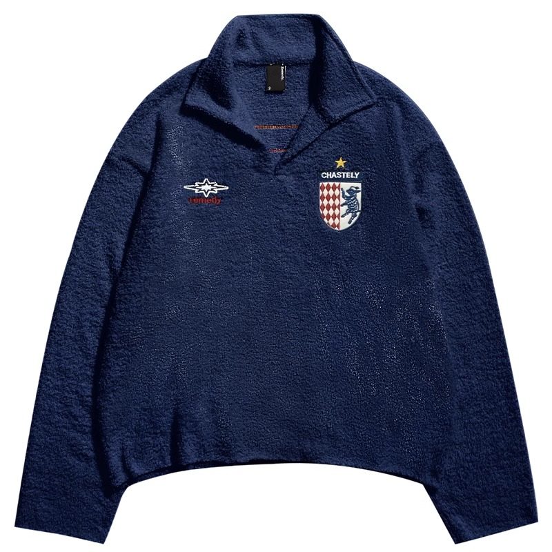 Remedy【英格羊】国潮春秋刺绣字母针织衫美式潮牌翻领毛衣男女