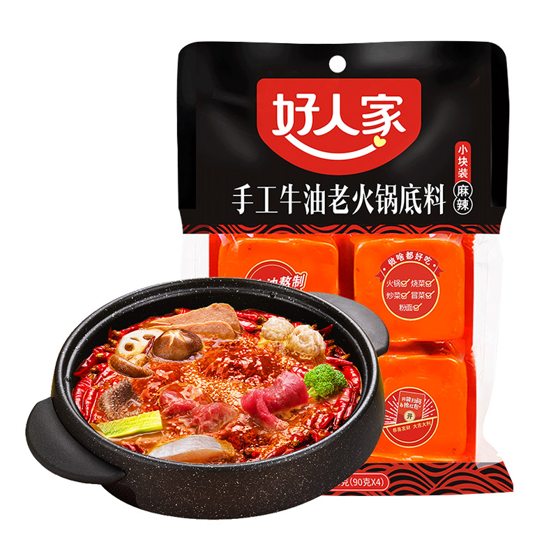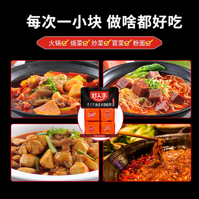 --------------------- 好人家火锅底料小包装一人份200g重庆麻辣牛油老火锅底料家用调料 【原售价】25元 【现售价】4.9元 【推荐理由】