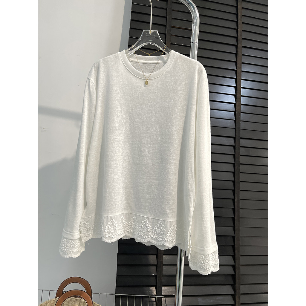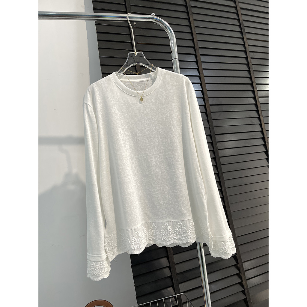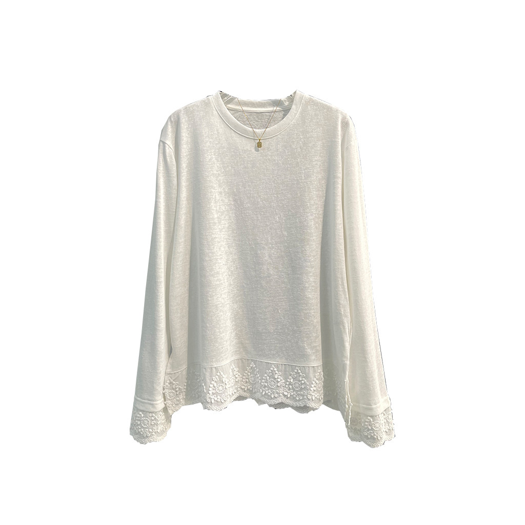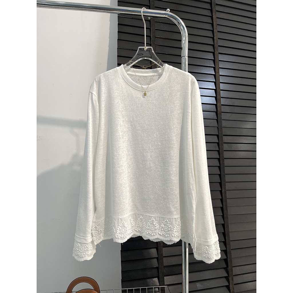 --------------------- 春装新款韩系甜美减龄纯色拼接蕾丝设计感圆领长袖T恤打底上衣潮 【原售价】158元 【现售价】80.5元 【推荐理由】