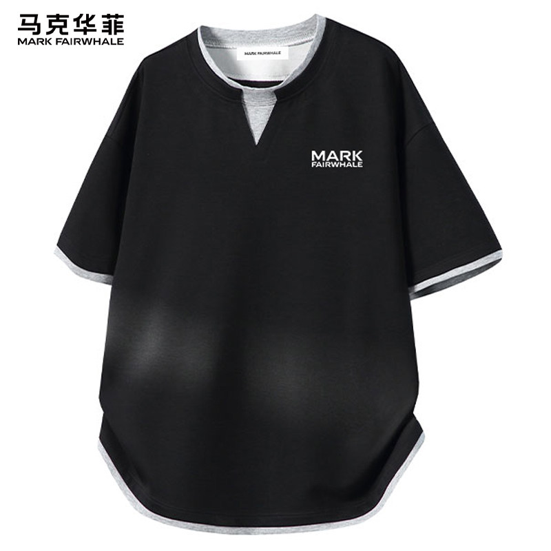 马克华菲假两件短袖T恤男款黑色潮牌百搭半袖上衣2026夏季新款