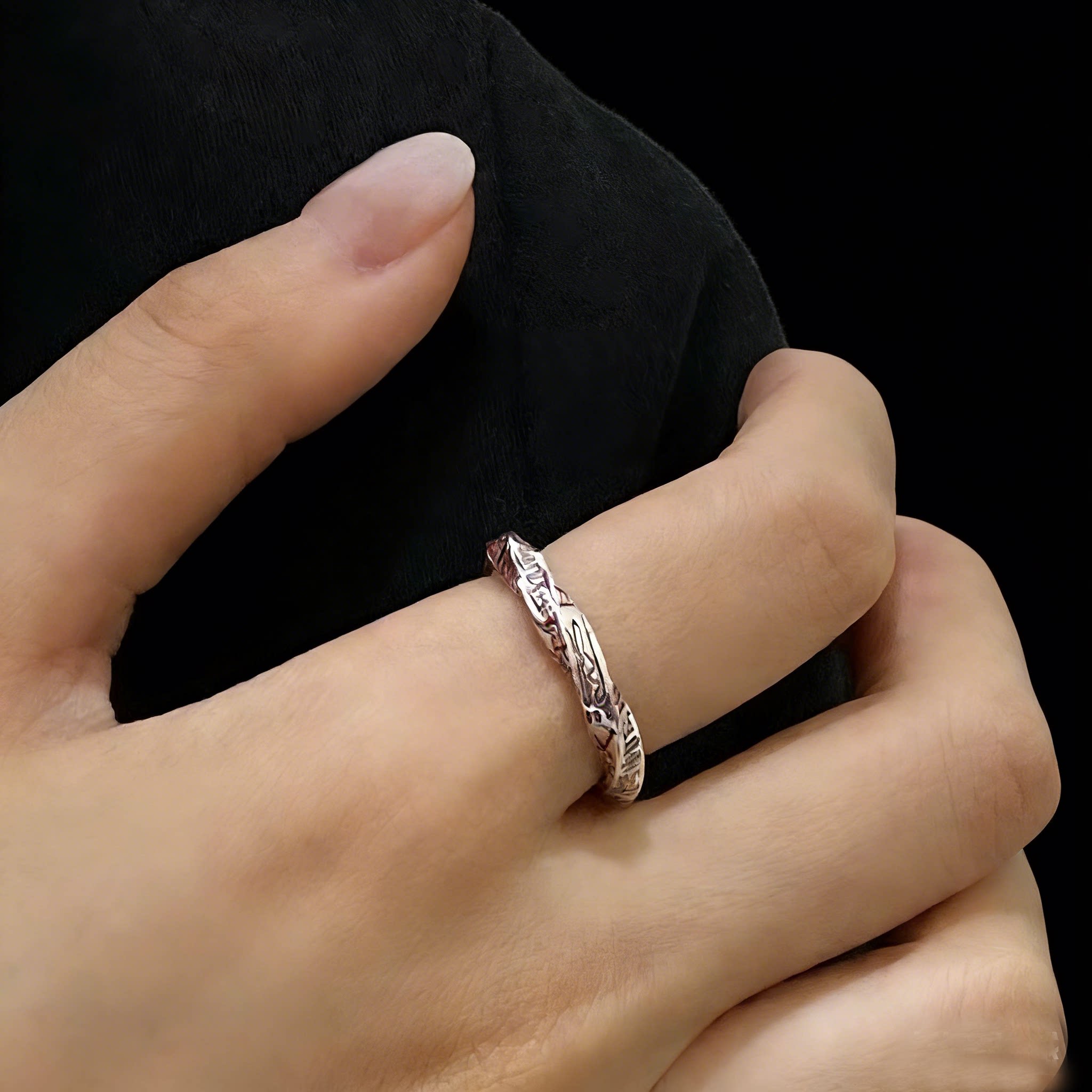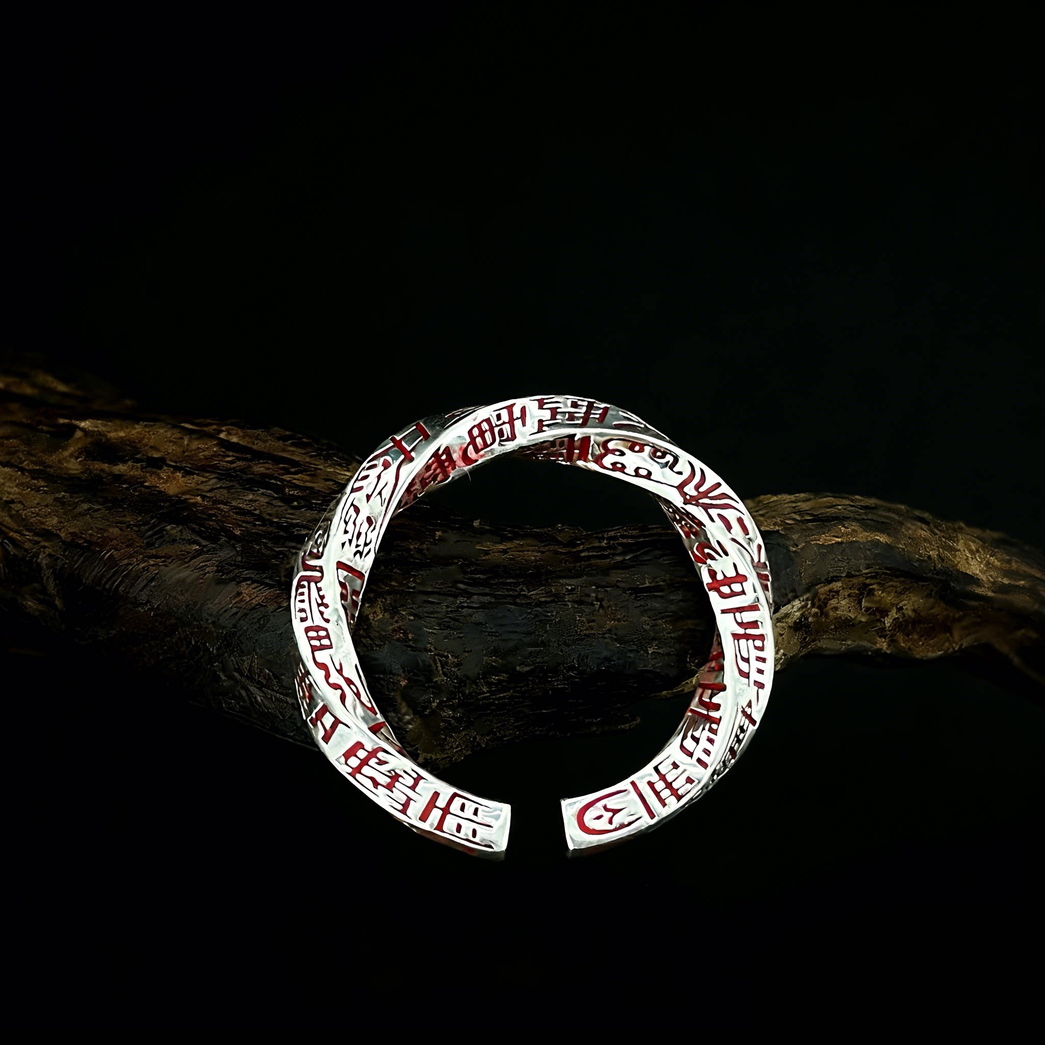 「道系」s925纯银道家饰品天蓬尺戒指扭转乾坤复古朱砂转运活口
