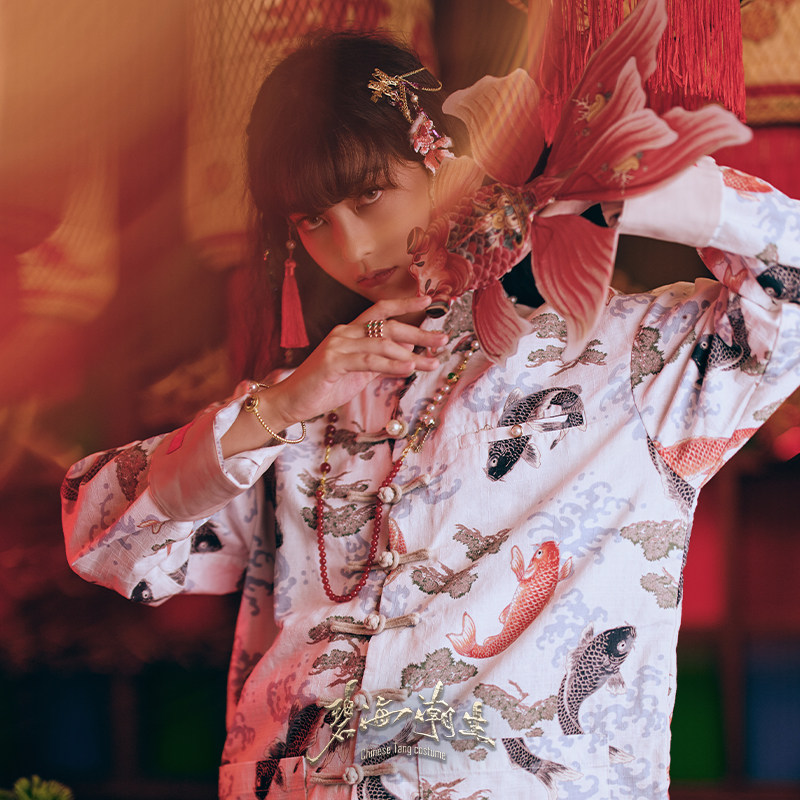 碧海潮生【白锦鲤】秋冬新款中国风国潮盘扣休闲印花唐装外套男女