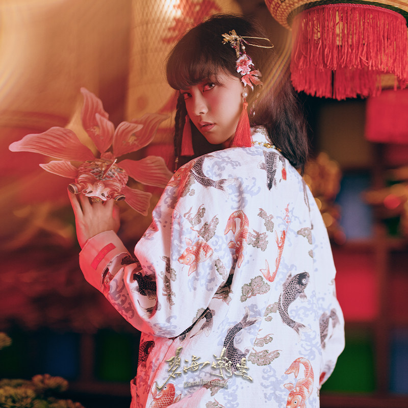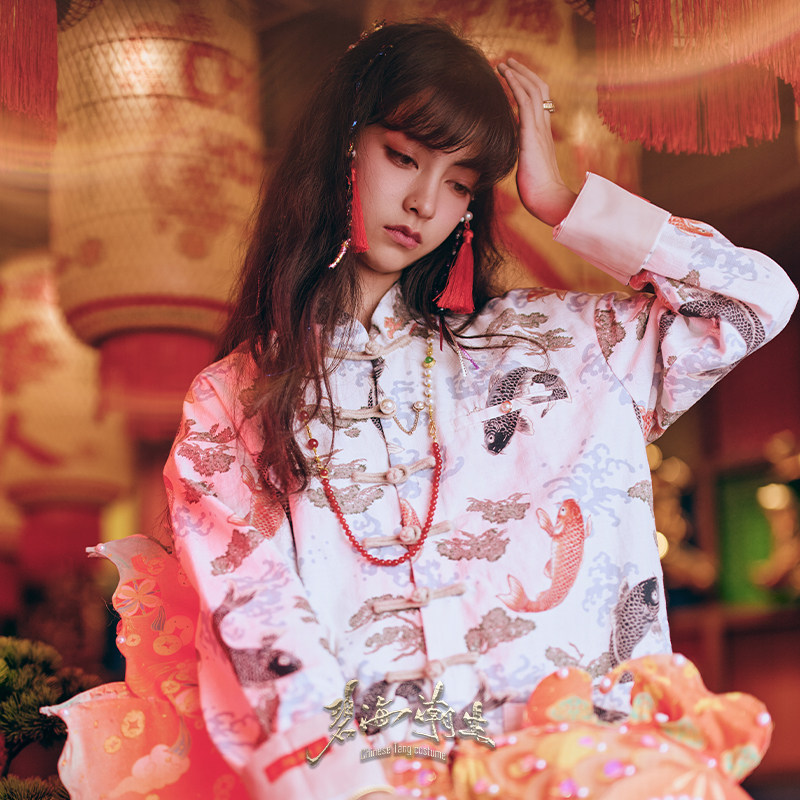 --------------------- 碧海潮生【白锦鲤】秋冬新款中国风国潮盘扣休闲印花唐装外套男女 【原售价】1798元 【现售价】949元 【推荐理由】