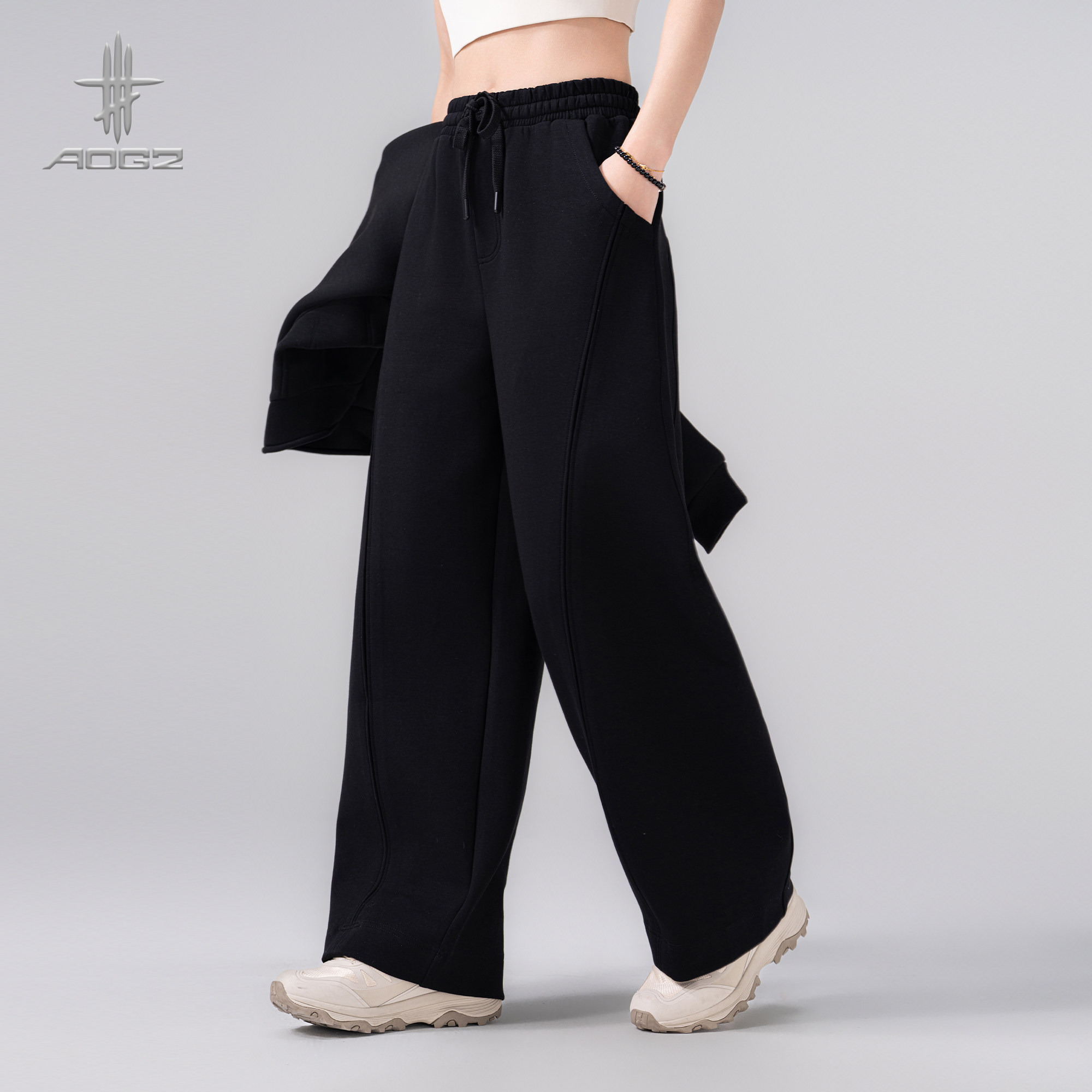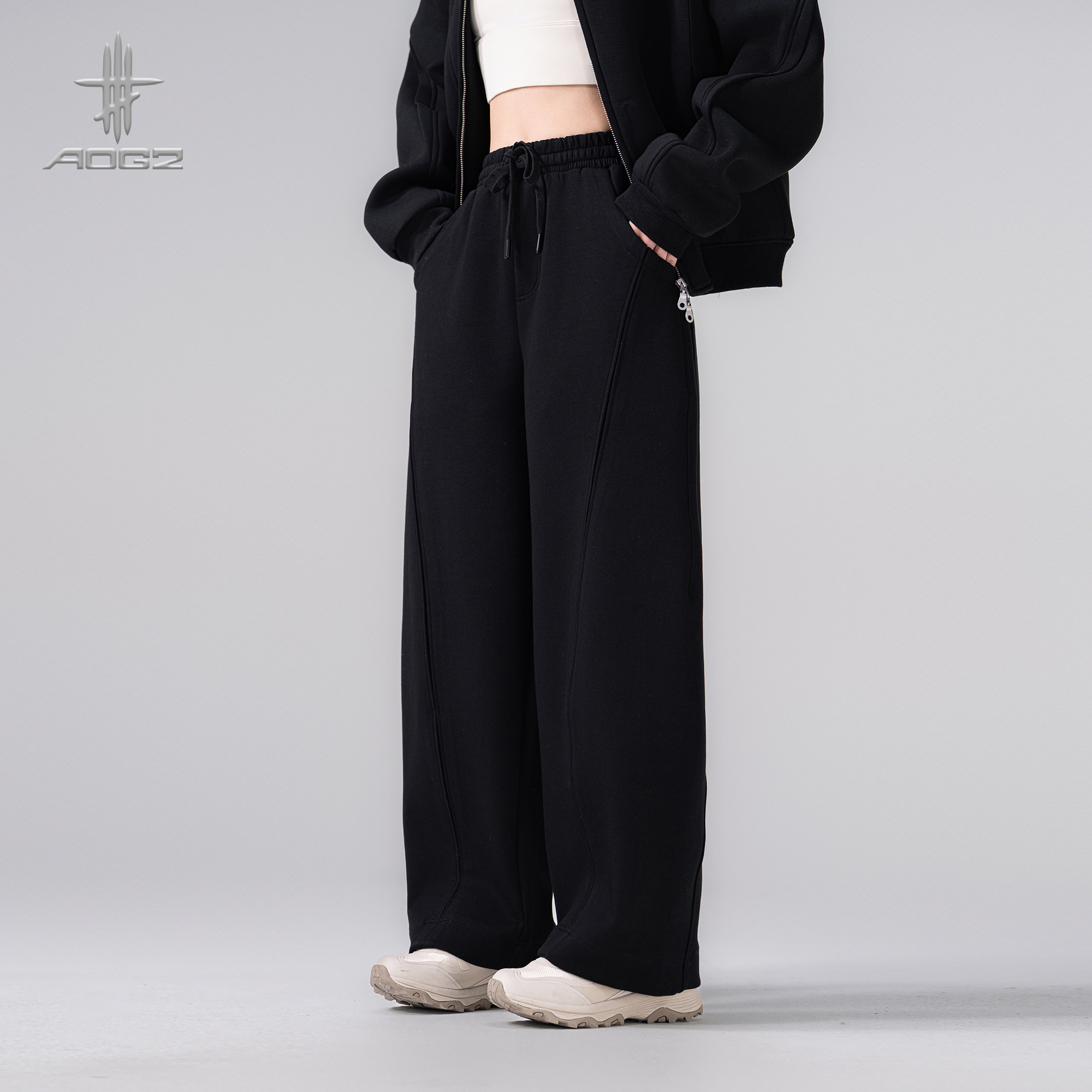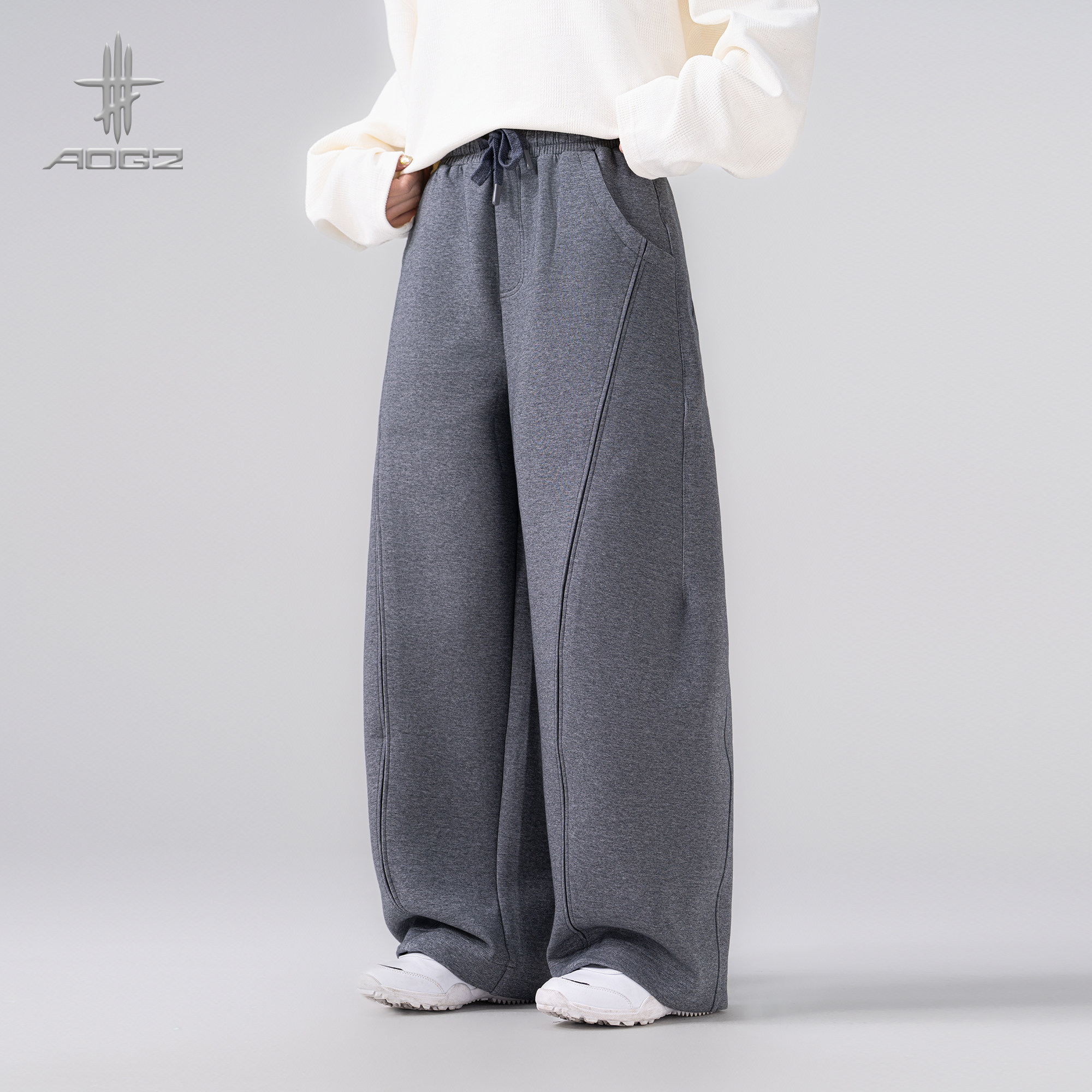 AOGZ弯刀空气层卫裤2026春季新款男女潮牌宽松运动长裤垂感阔腿裤