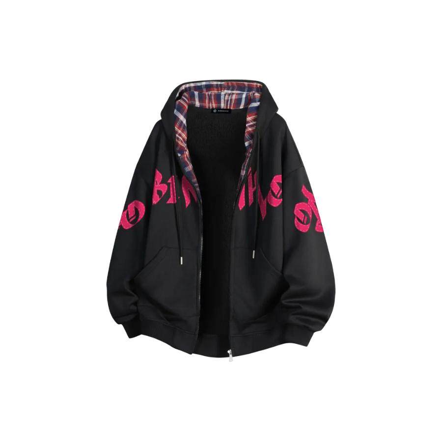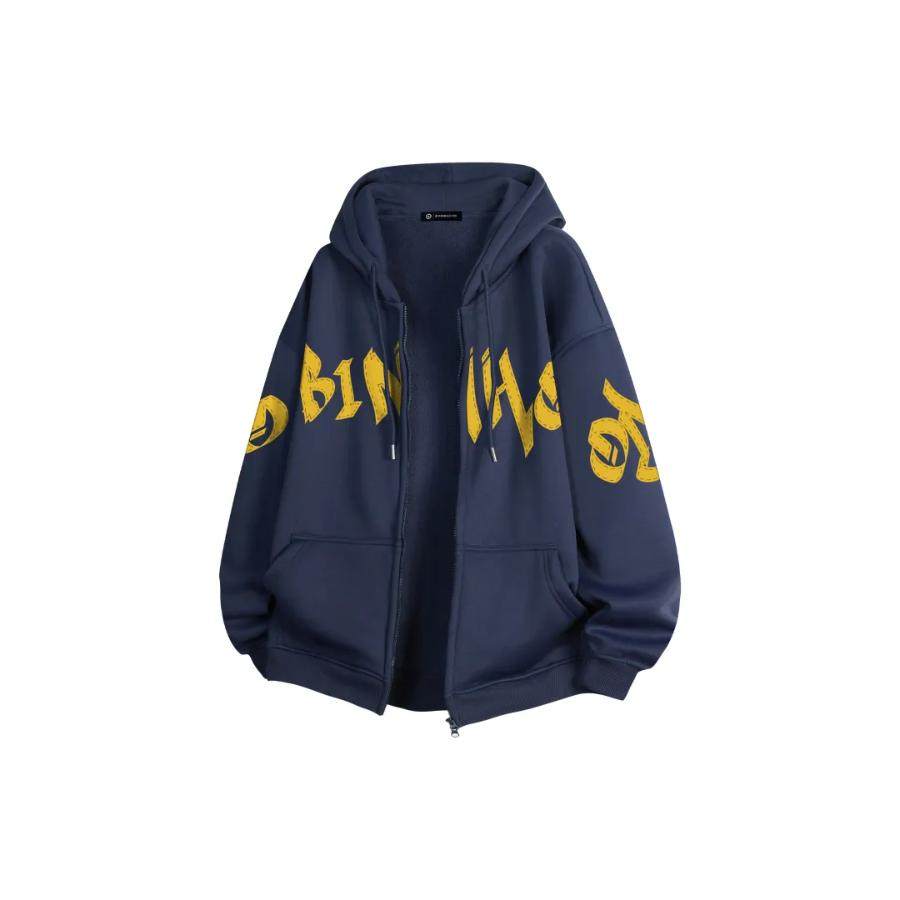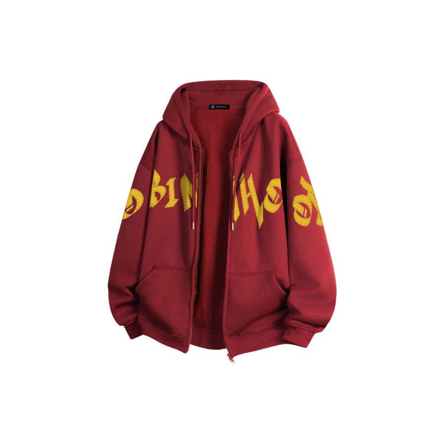 罗宾H美式高街印花重磅连帽开衫拉链宽松加绒加厚学院风长袖卫衣