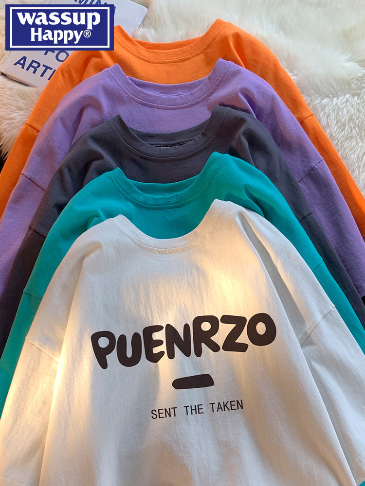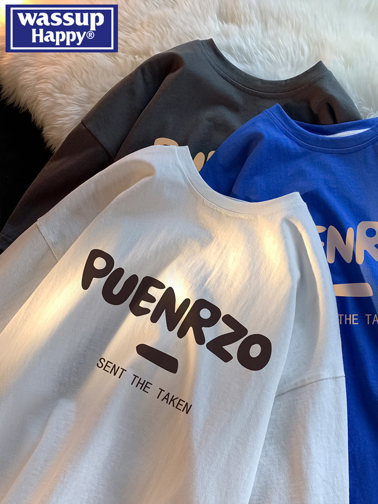 wassup happy重磅短袖t恤男士夏季新款潮牌宽松半袖上衣美式半袖
