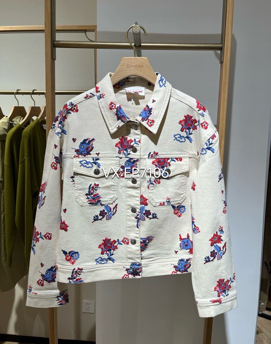 春夏款米色桑蚕丝牛仔棉印花夹克国潮外套 EGJPDJ103A-2699