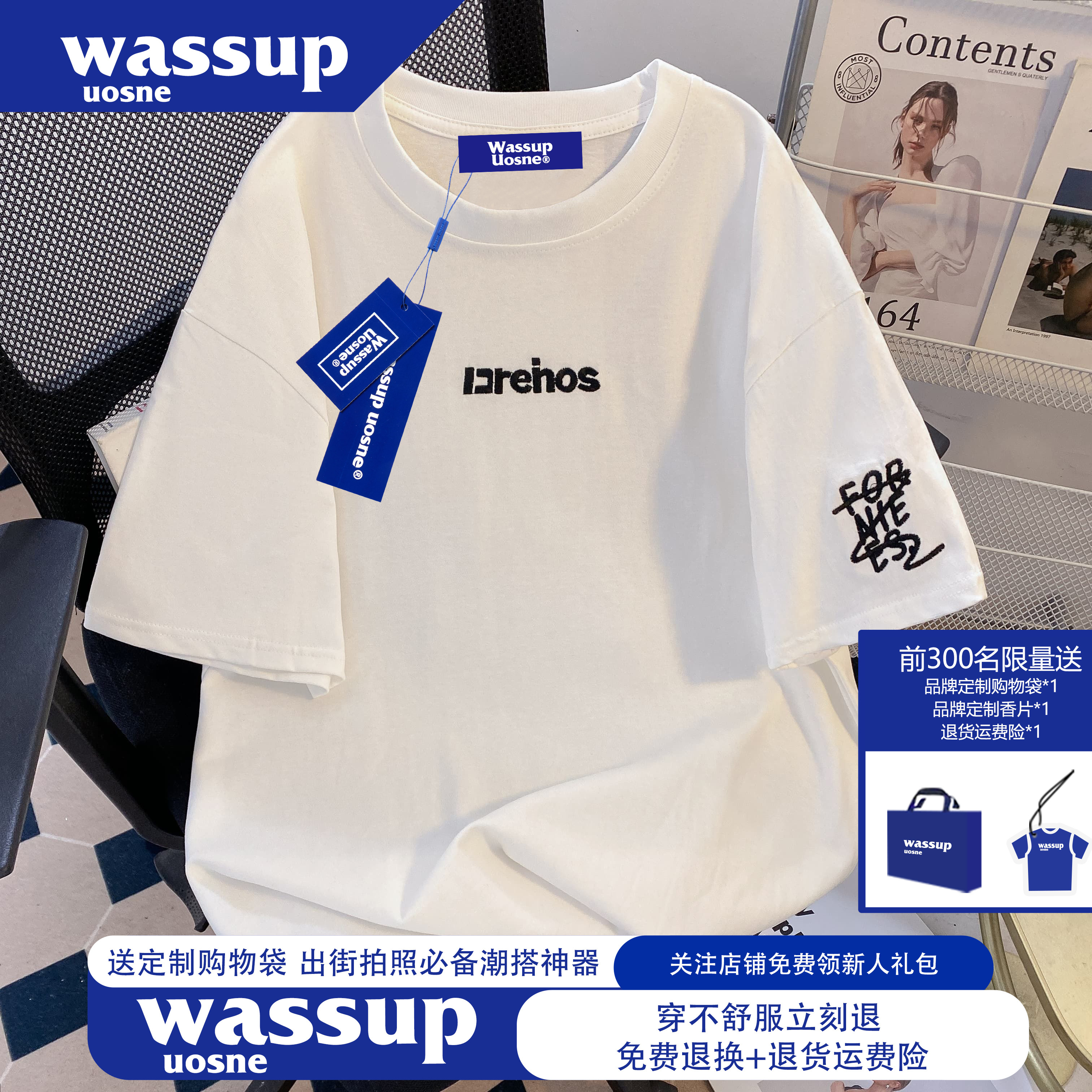 淘宝WASSUP今年流行的爆款刺绣短袖t恤男女2026新款夏季纯棉情侣上衣