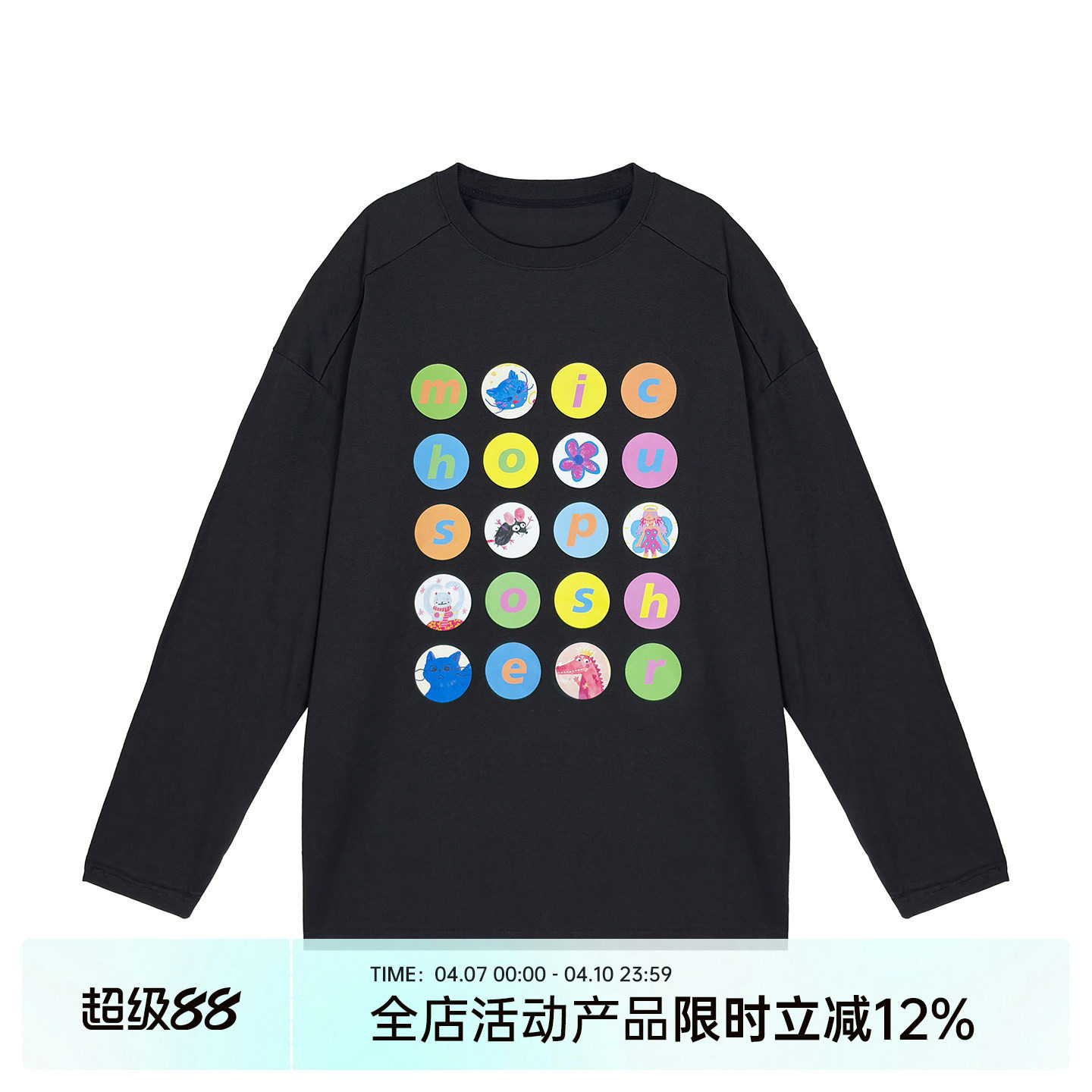 MIICHOUS米丘寺 趣味卡通波点 纯棉亲肤抗菌套头圆领长袖T恤