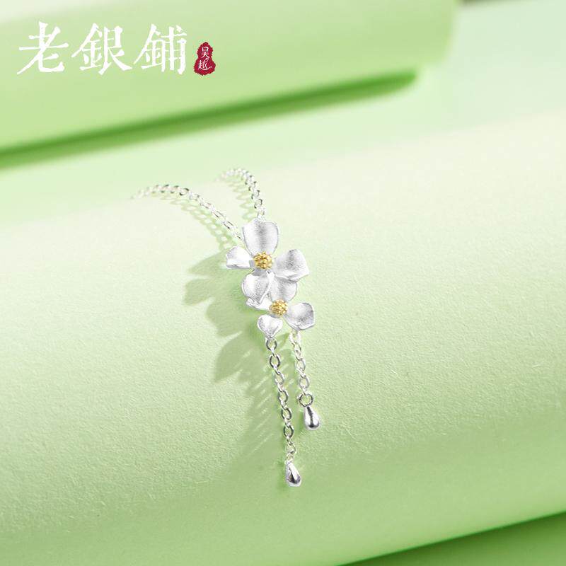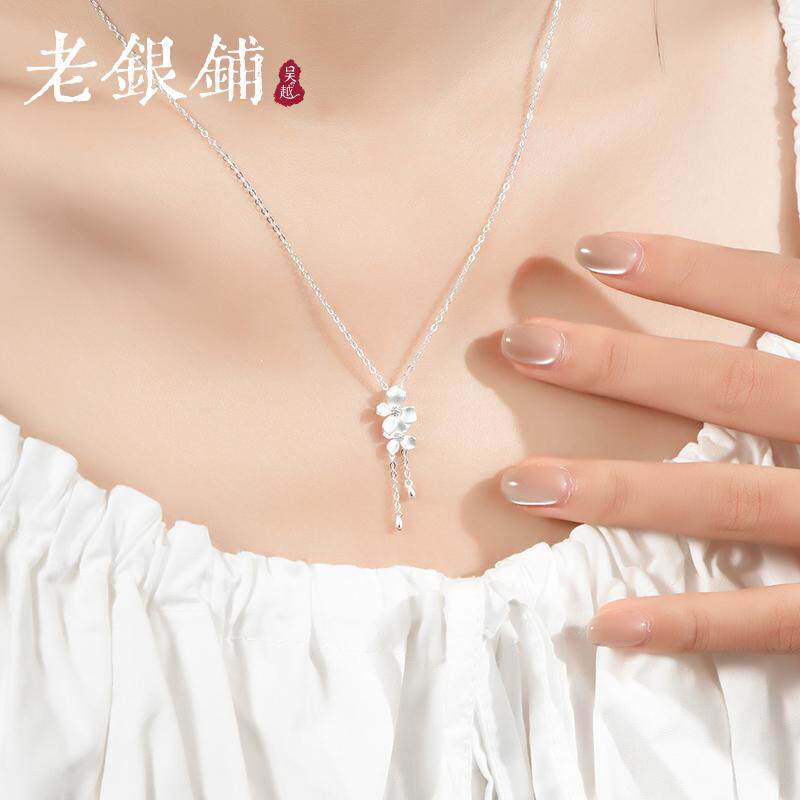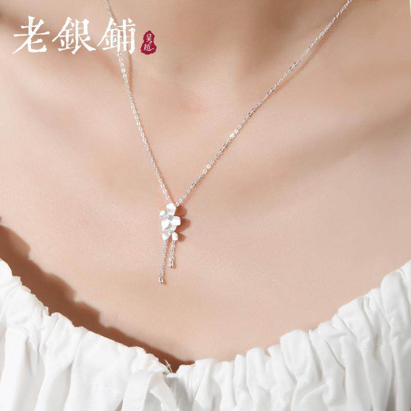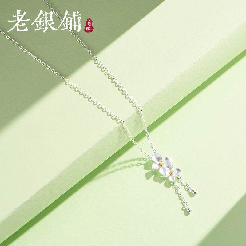 吴越老银铺足银999栀子花项链简约时尚百搭小众ins风送女友礼物