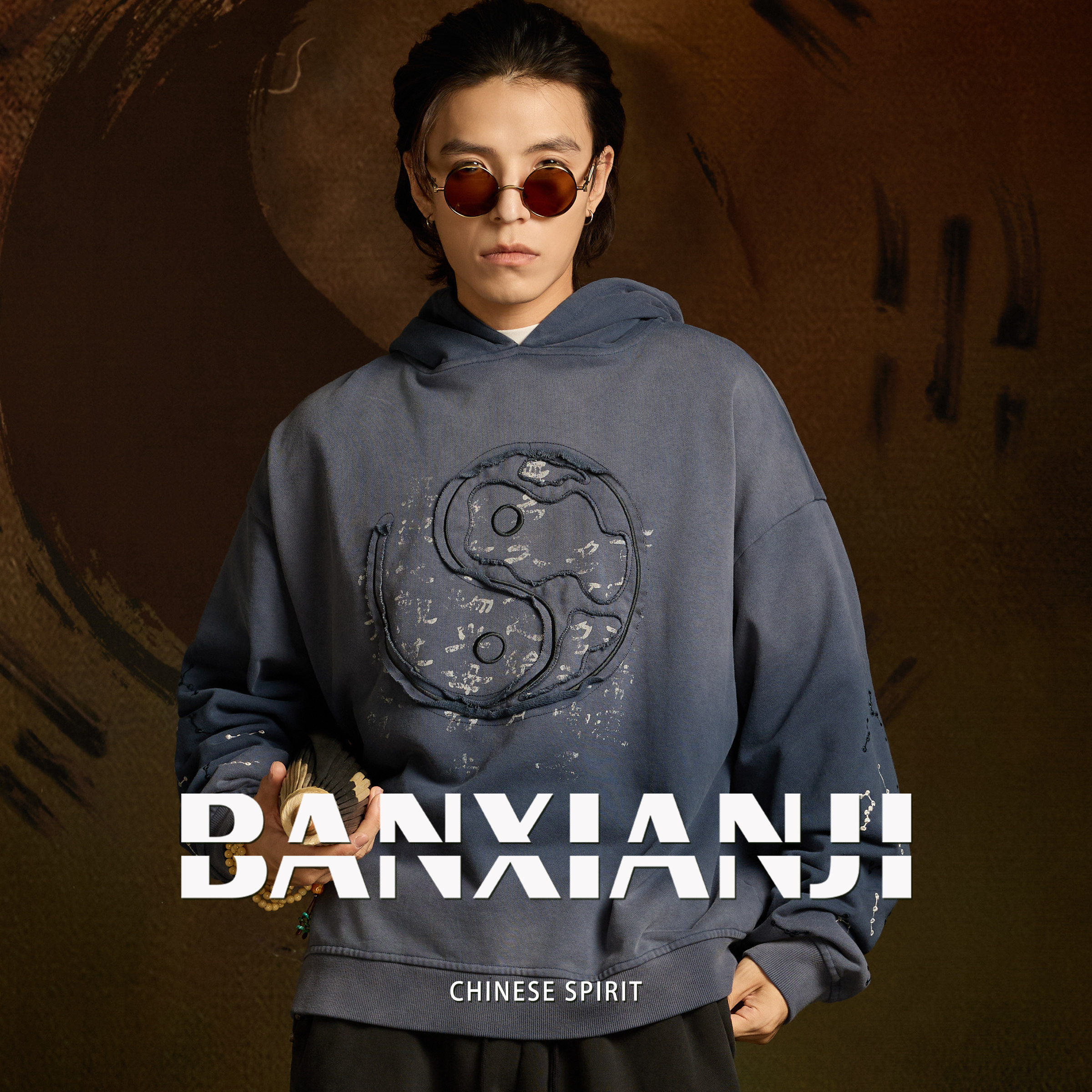 淘宝半闲集<非恒道>太极连帽卫衣重磅刺绣国潮长袖上衣新中式男装