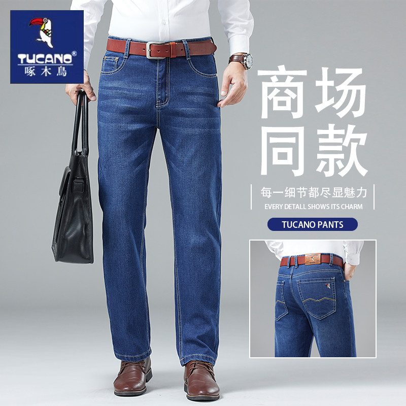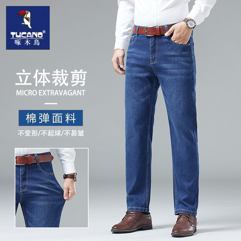 淘宝啄木鸟牛仔裤男春季高端商务男款2026新款宽松直筒弹力休闲长裤子