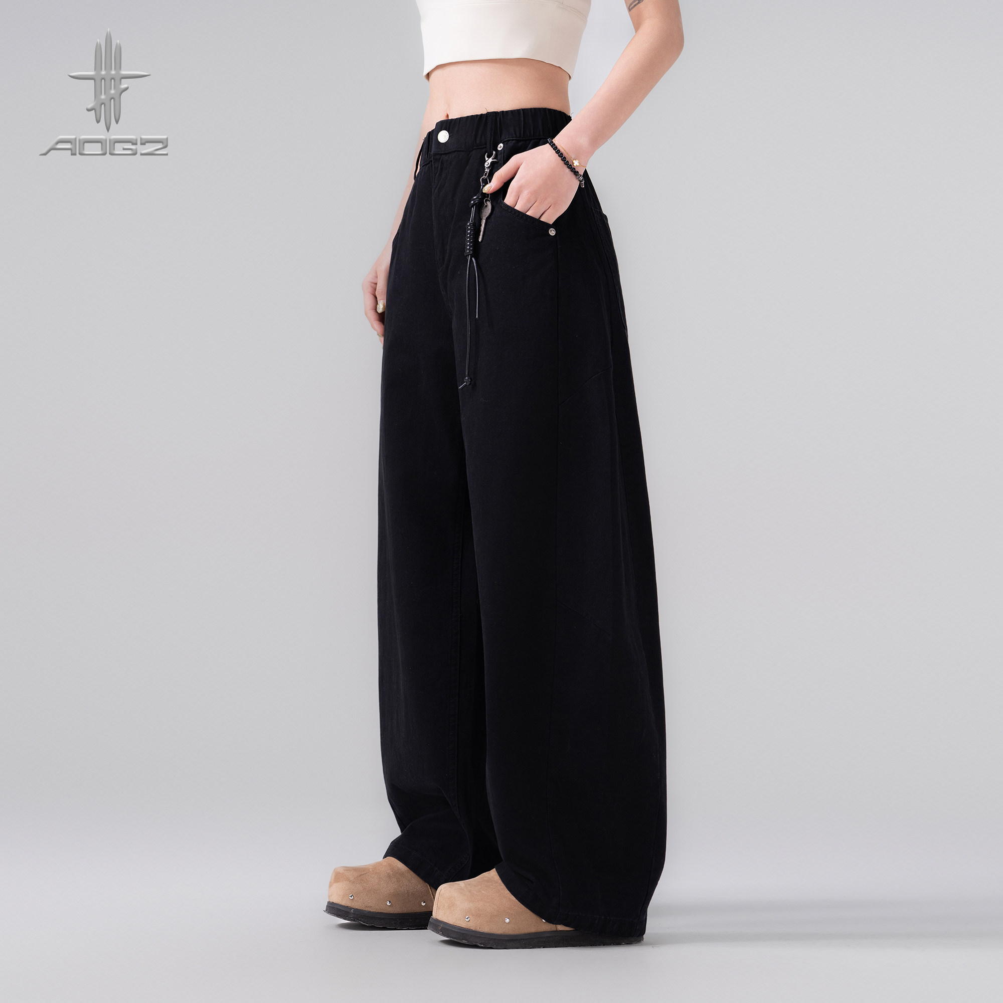 AOGZ弯刀阔腿休闲裤男女2026春季新款纯色美式百搭宽松垂感长裤潮