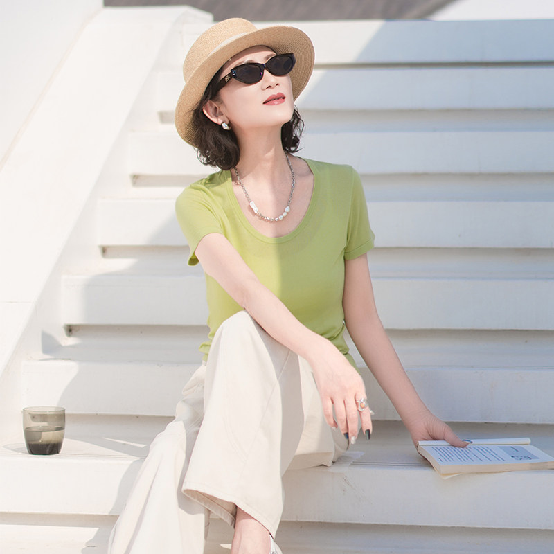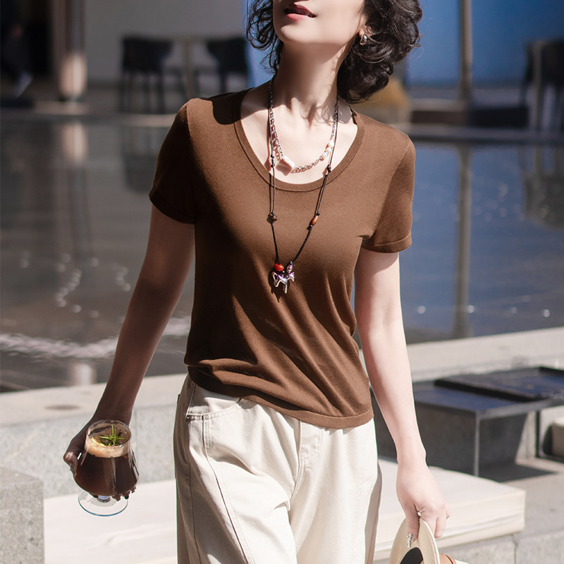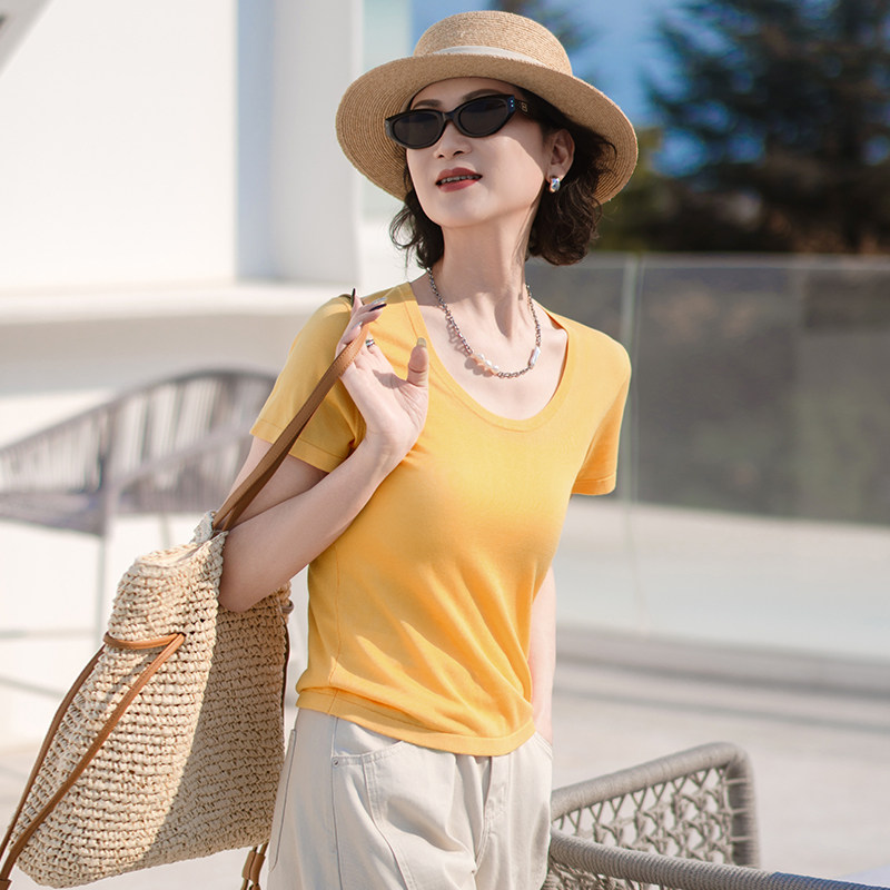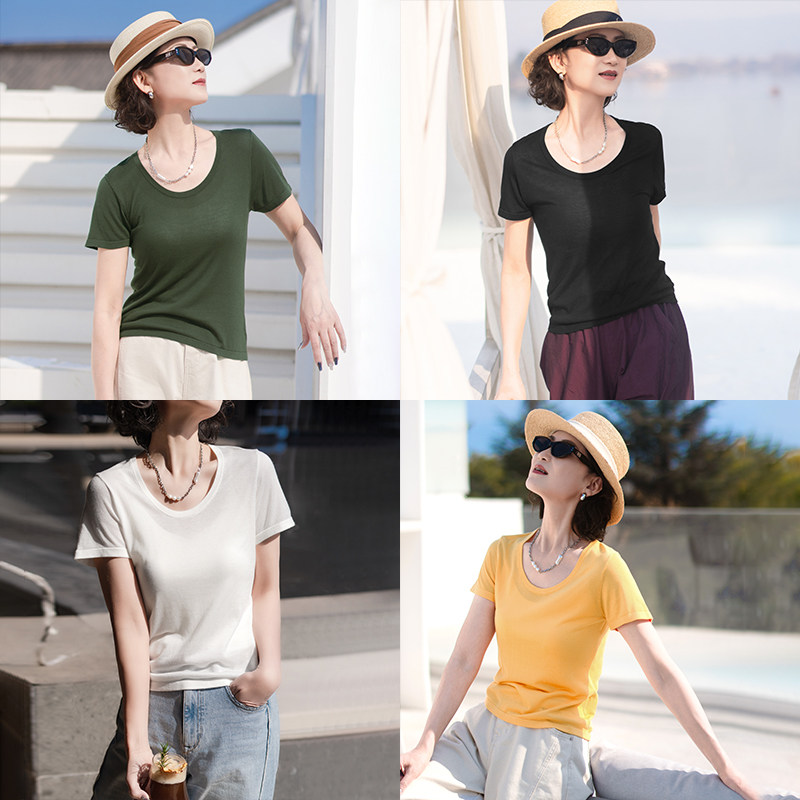 一非空间夏装新款天丝短袖T恤透气吸汗软适宽松显瘦百搭套头衫女