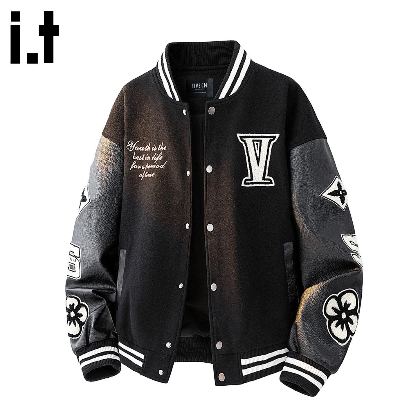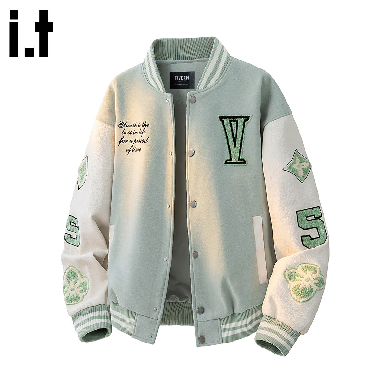 淘宝it FIVE CM重磅毛巾绣棒球服男女同款呢子外套情侣款美式潮牌夹克