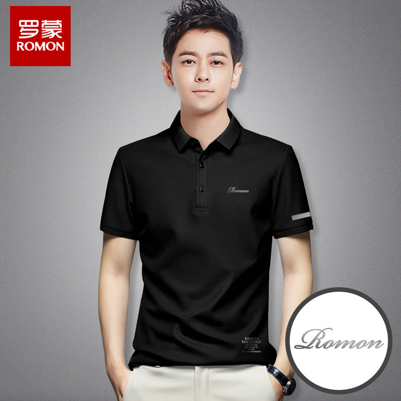 淘宝罗蒙商务休闲polo衫男短袖夏季新款潮流透气速干黑色翻领半袖t恤