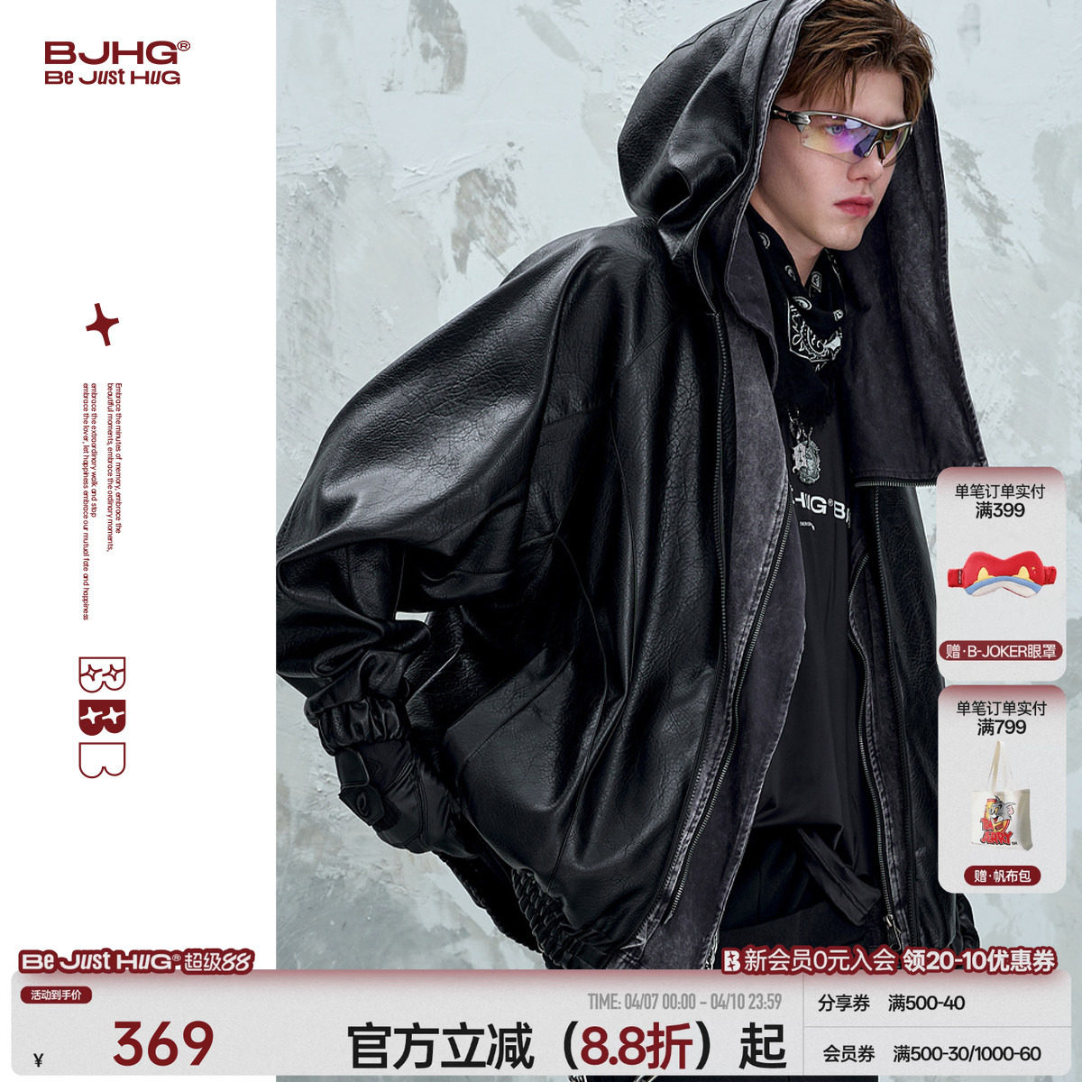 --------------------- BJHG不计后果复古连帽皮衣男士外套春潮牌痞帅机车服皮夹克外套女 【原售价】429元 【现售价】369元 【推荐理由】