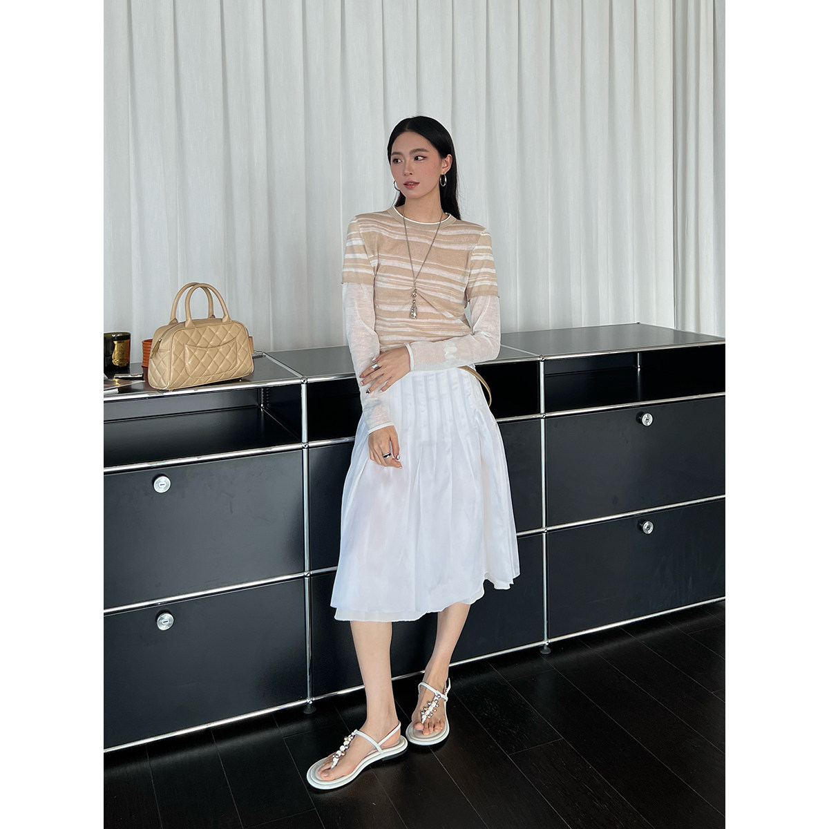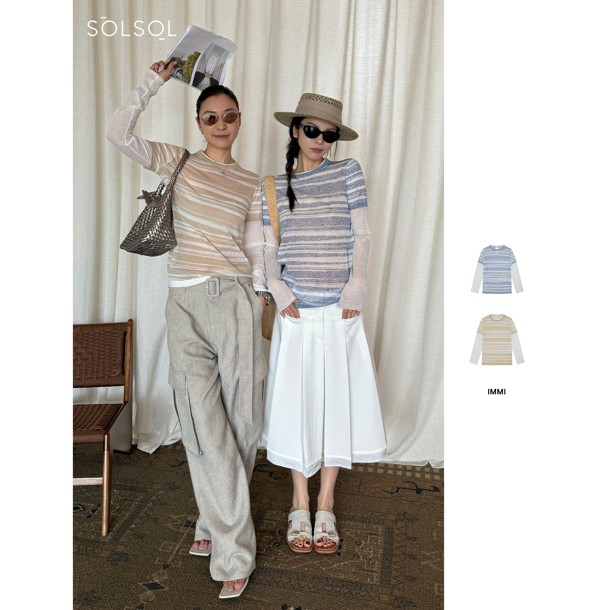 IMMI 设计师品牌 25春夏新品 麻感针织假两件长袖上衣 SOLSOL