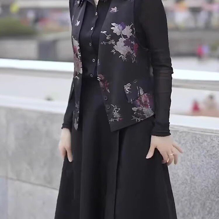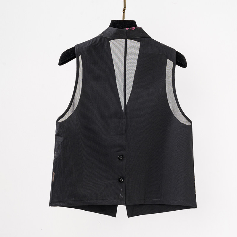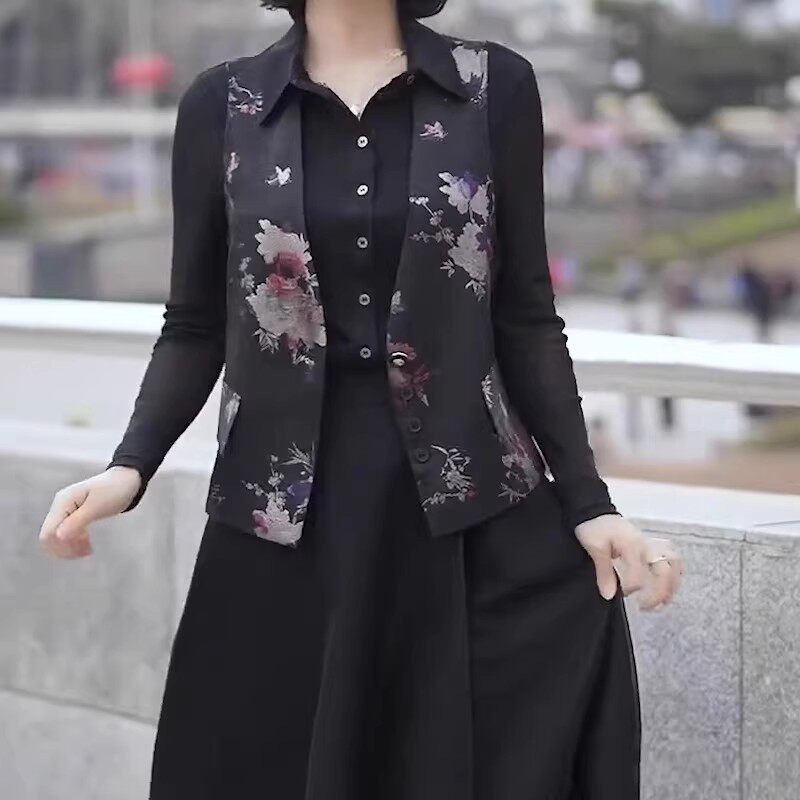 时尚复古V领网纱马甲女新款流行新中式国风洋气气质减龄坎肩外套