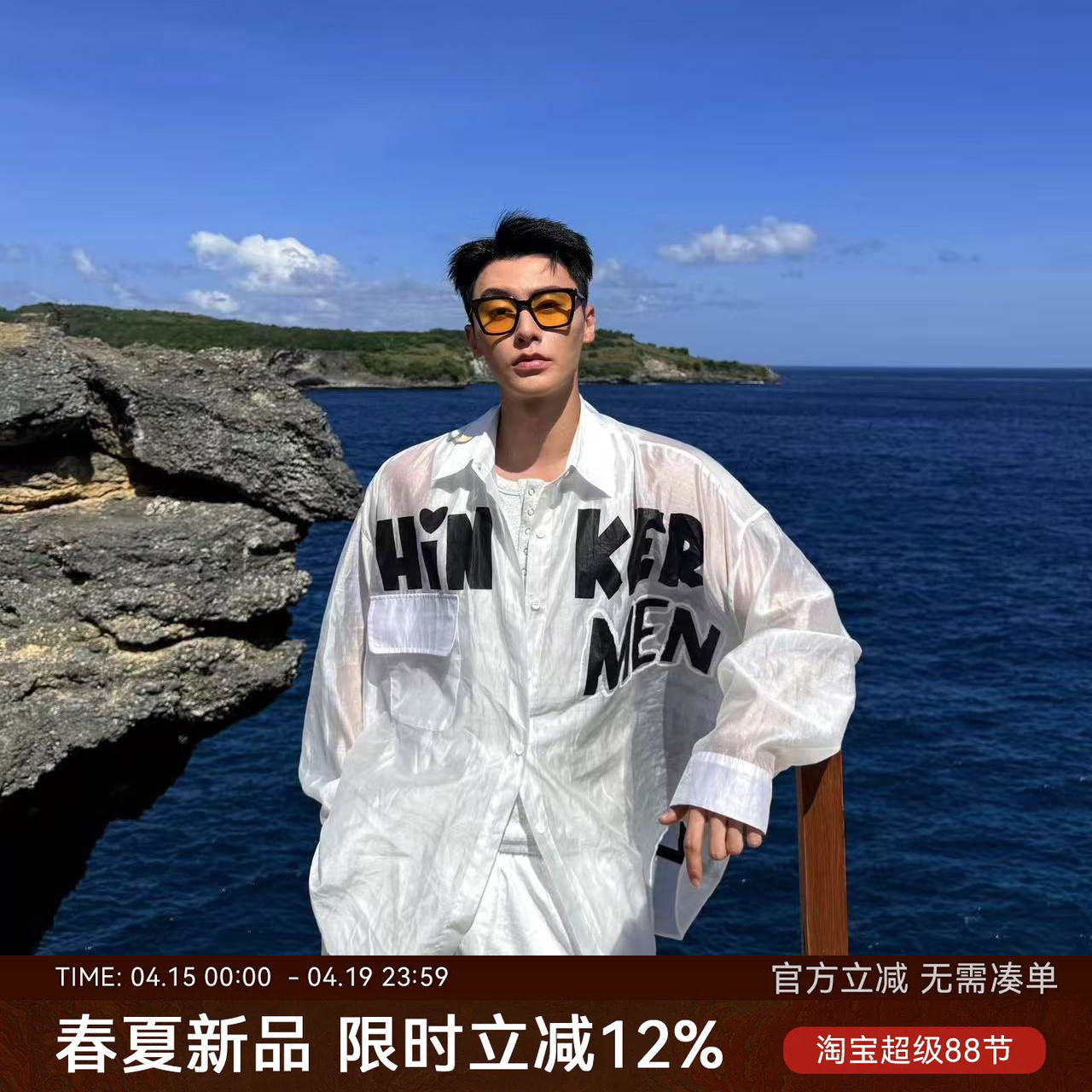 获衣局-夏季日常休闲宽松长袖超薄莱赛尔天丝POLO衬衫大字母印花