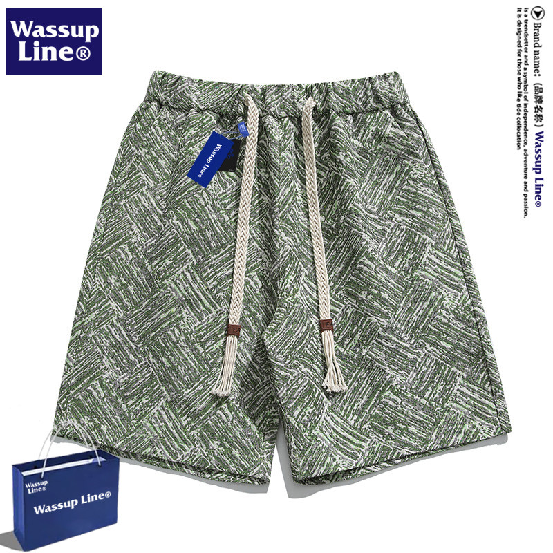 WASSUP Line潮牌五分裤男夏季高级感提花短裤男款宽松沙滩休闲裤