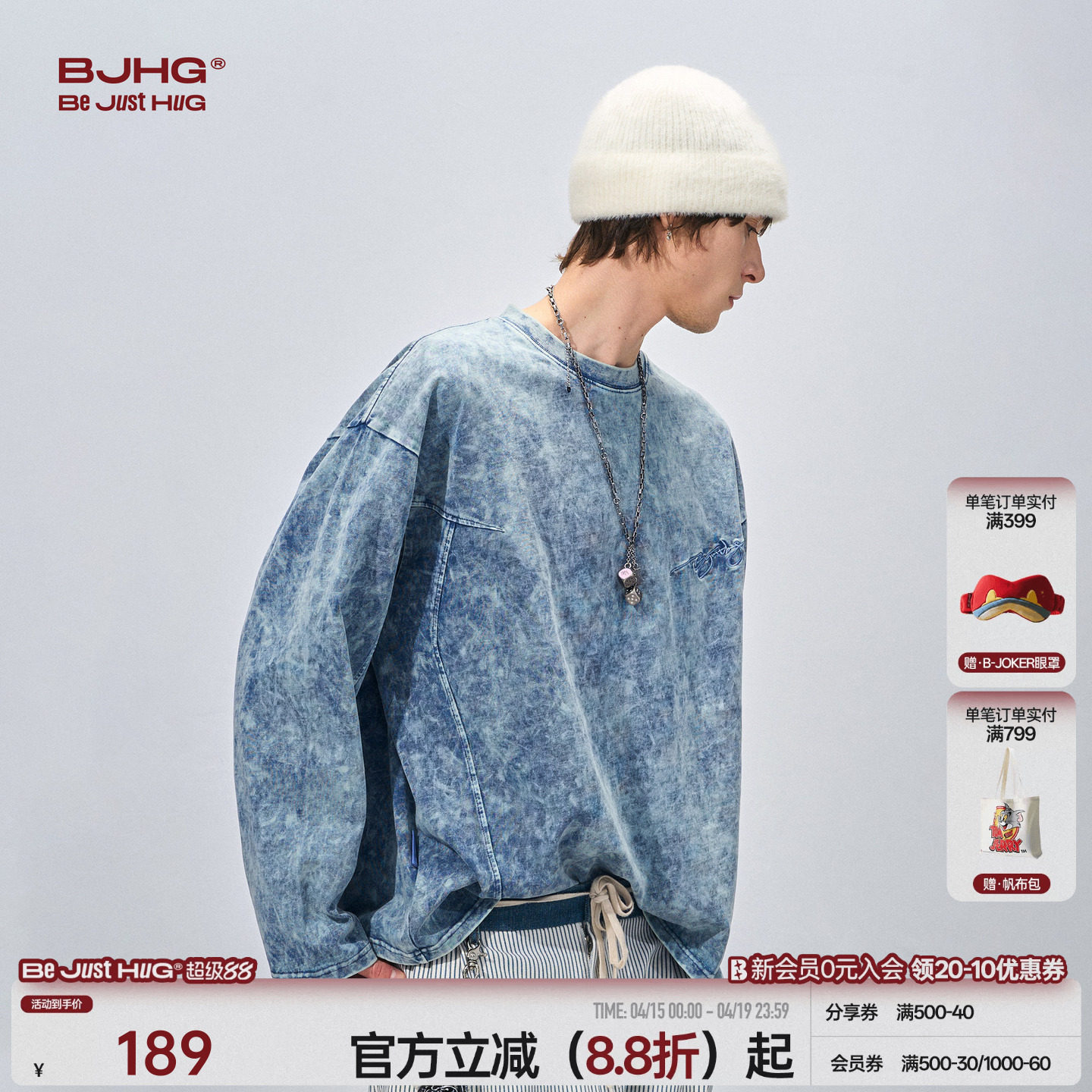 --------------------- BJHG不计后果 重磅水洗做旧长袖t恤男士打底衫春纯棉内搭宽松卫衣 【原售价】219元 【现售价】189元 【推荐理由】