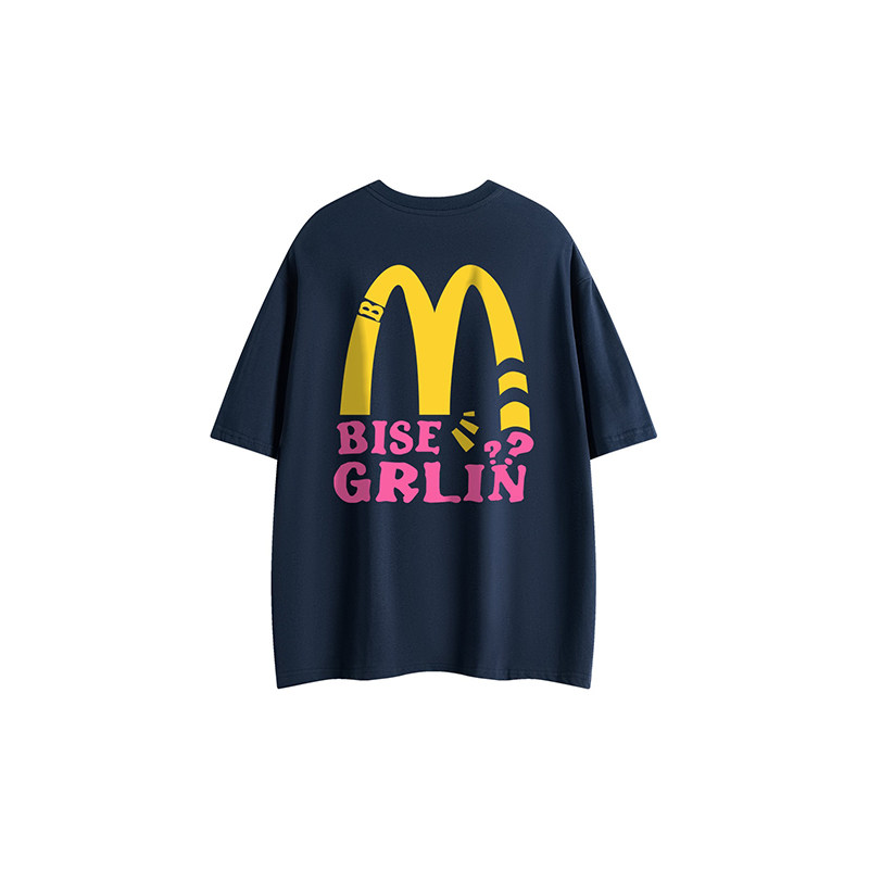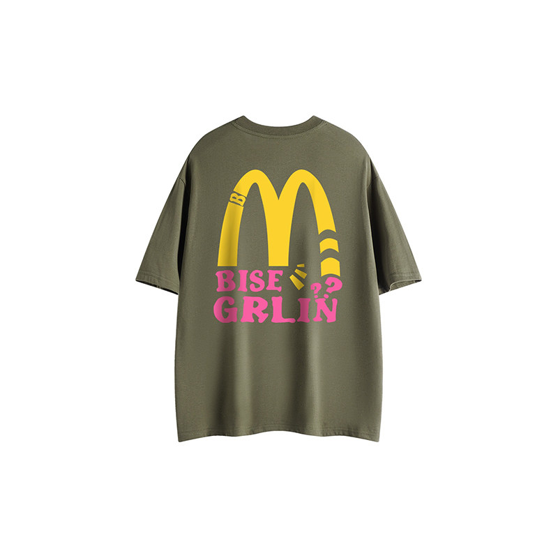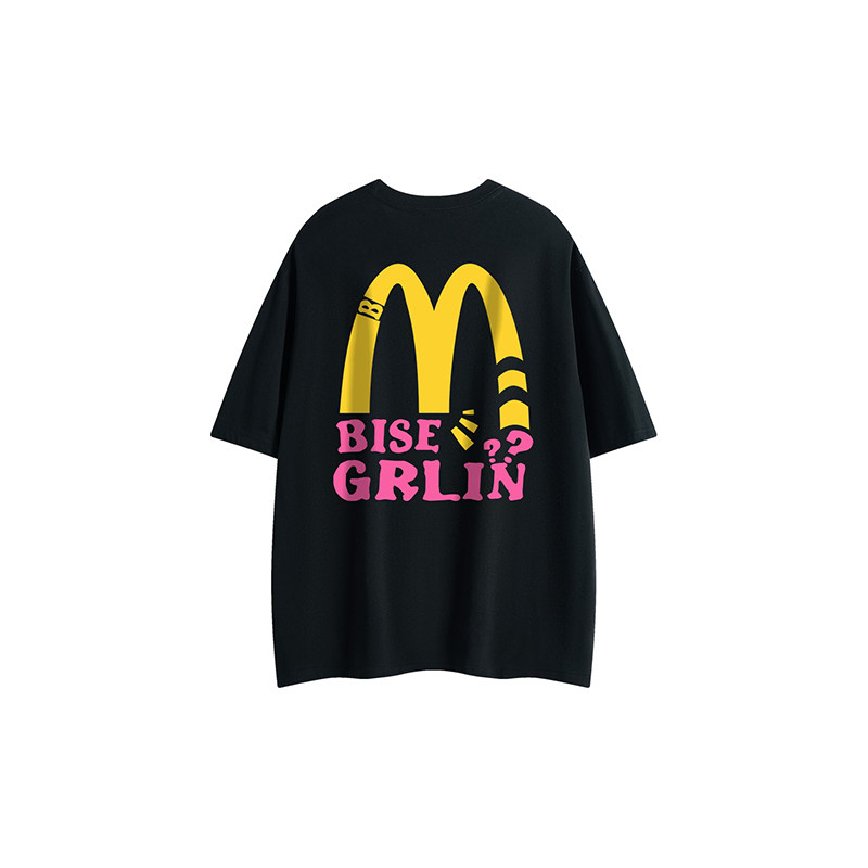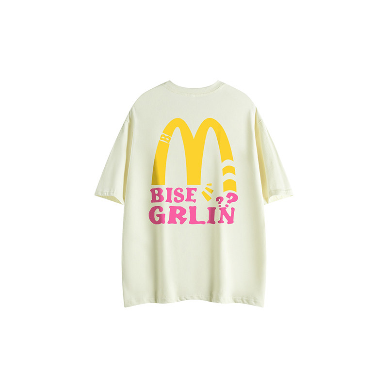 BISEGRLIN比斯格林趣味恶搞麦门休闲宽松落肩圆领套头短袖T恤 比