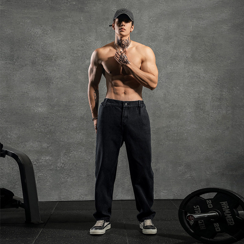 --------------------- 鹿家门国潮大码男装黑色复古牛仔裤印花休闲高街哥特百搭潮流长裤 【原售价】369元 【现售价】219元 【推荐理由】