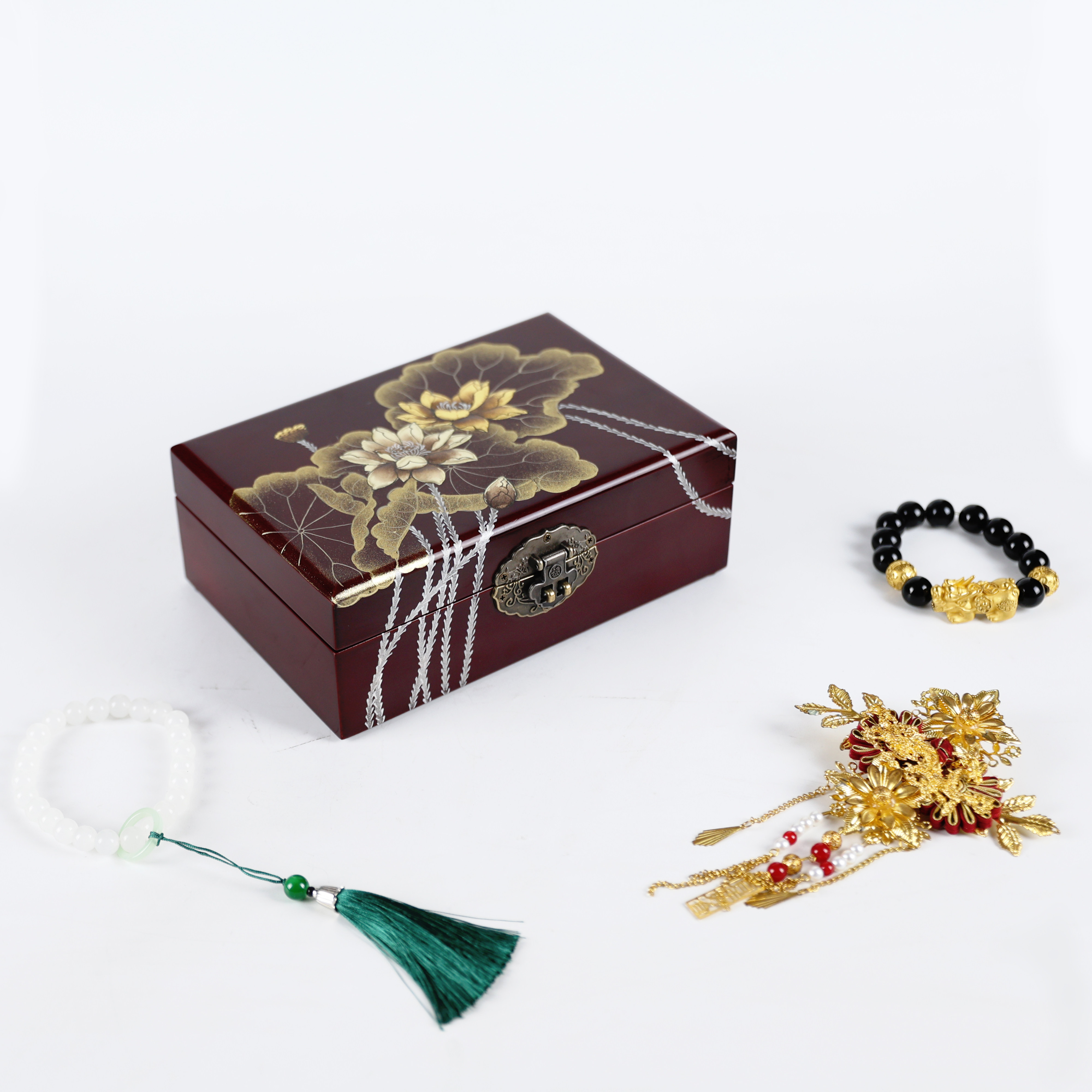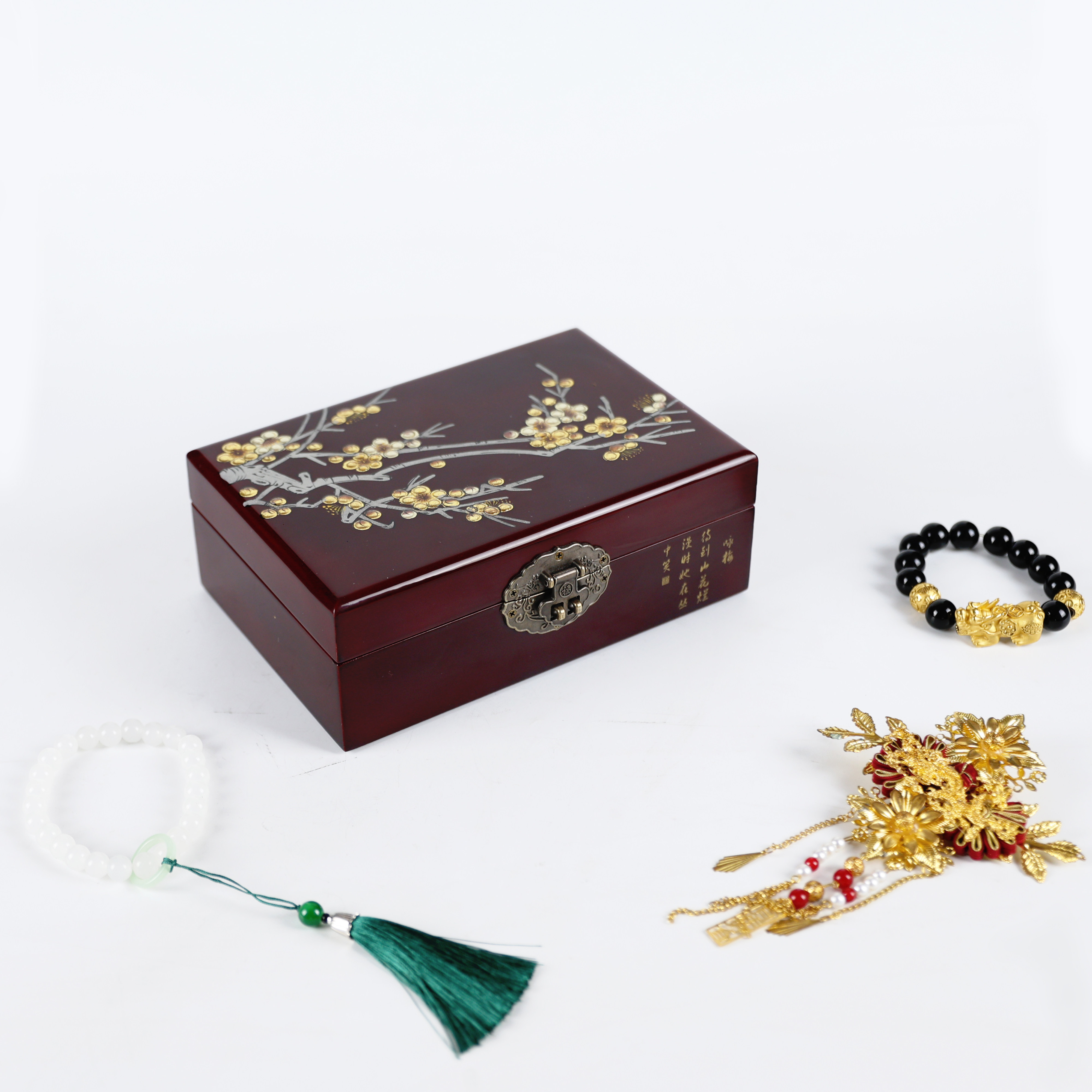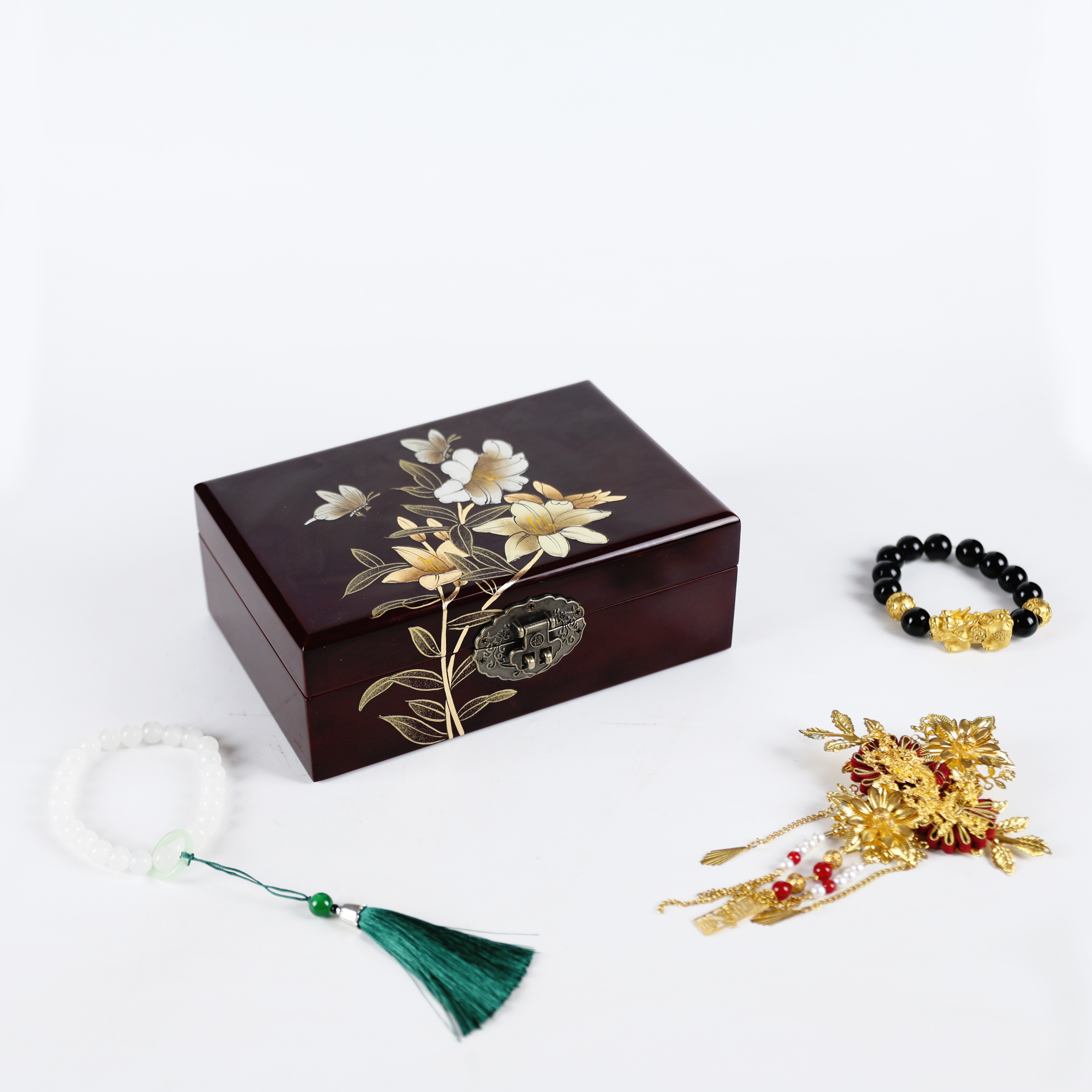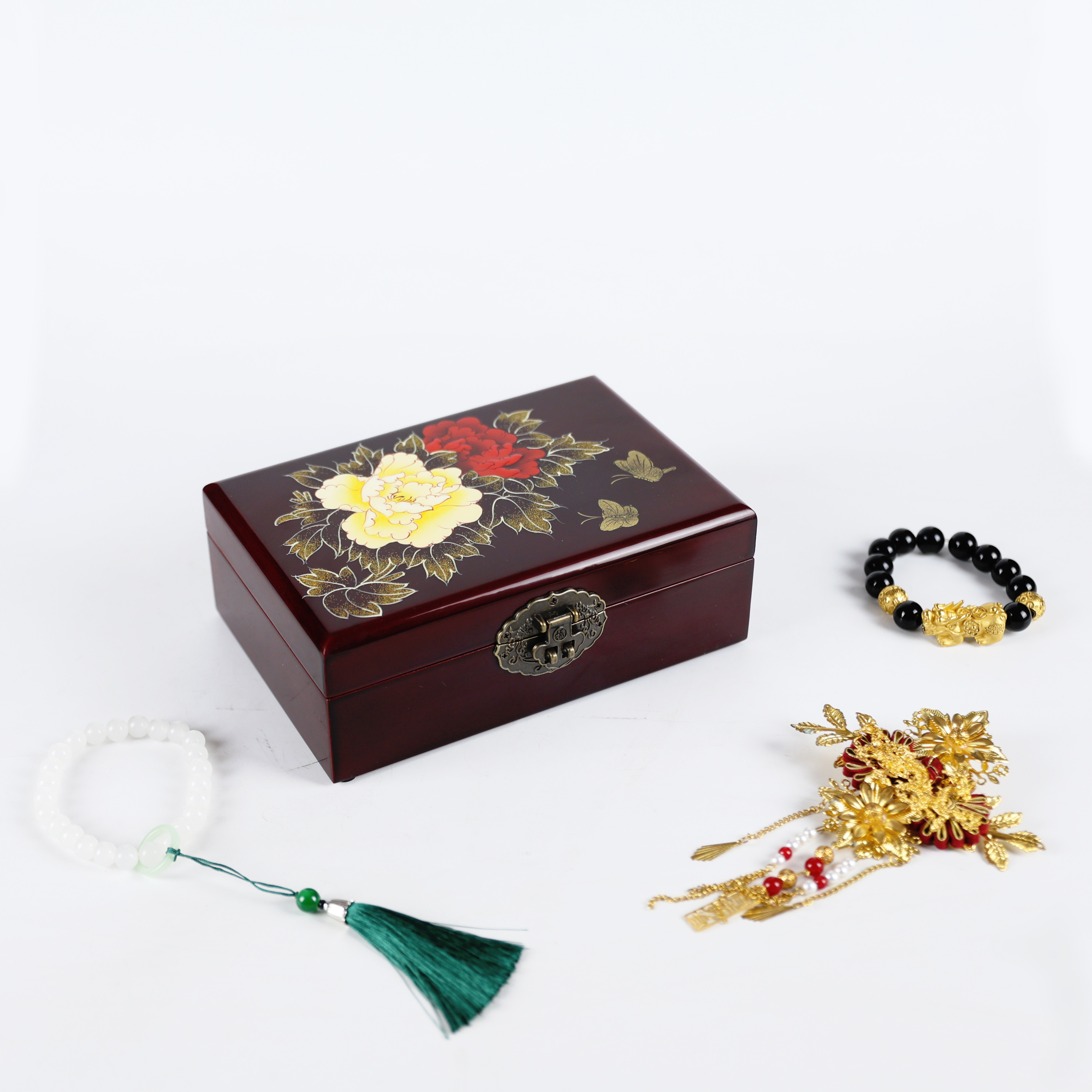 古风木质首饰盒妆奁复古三金盒饰品盒平遥推光漆器中国风结婚礼物
