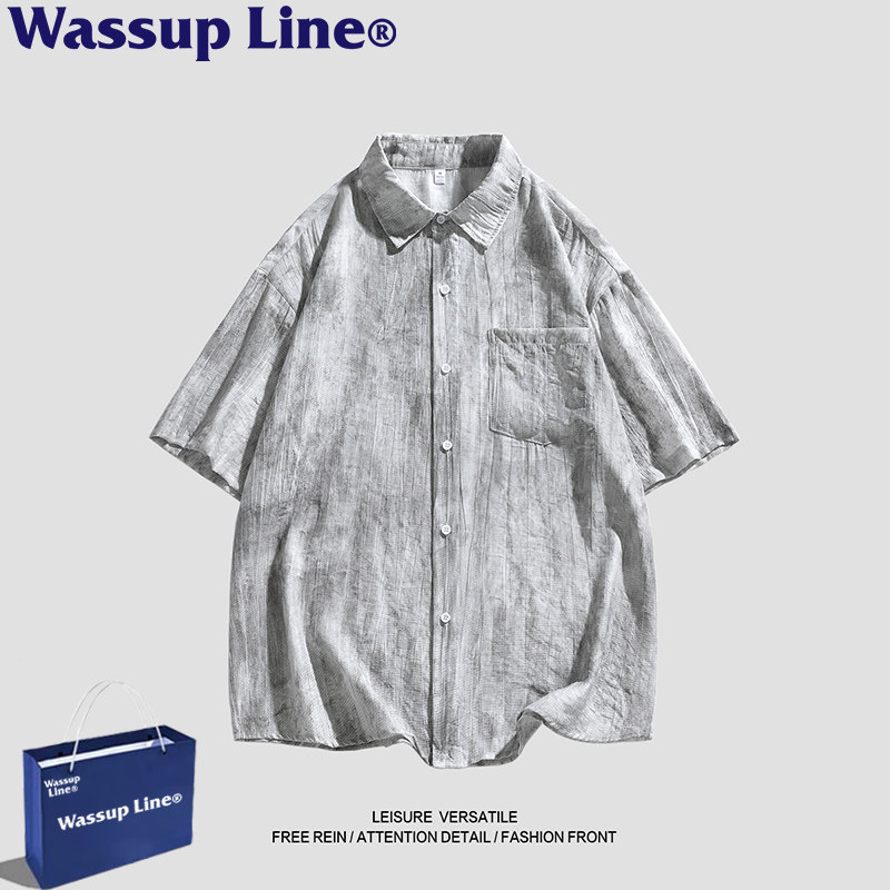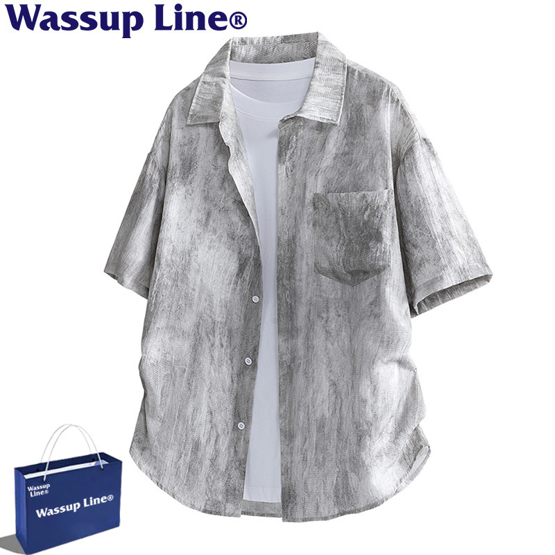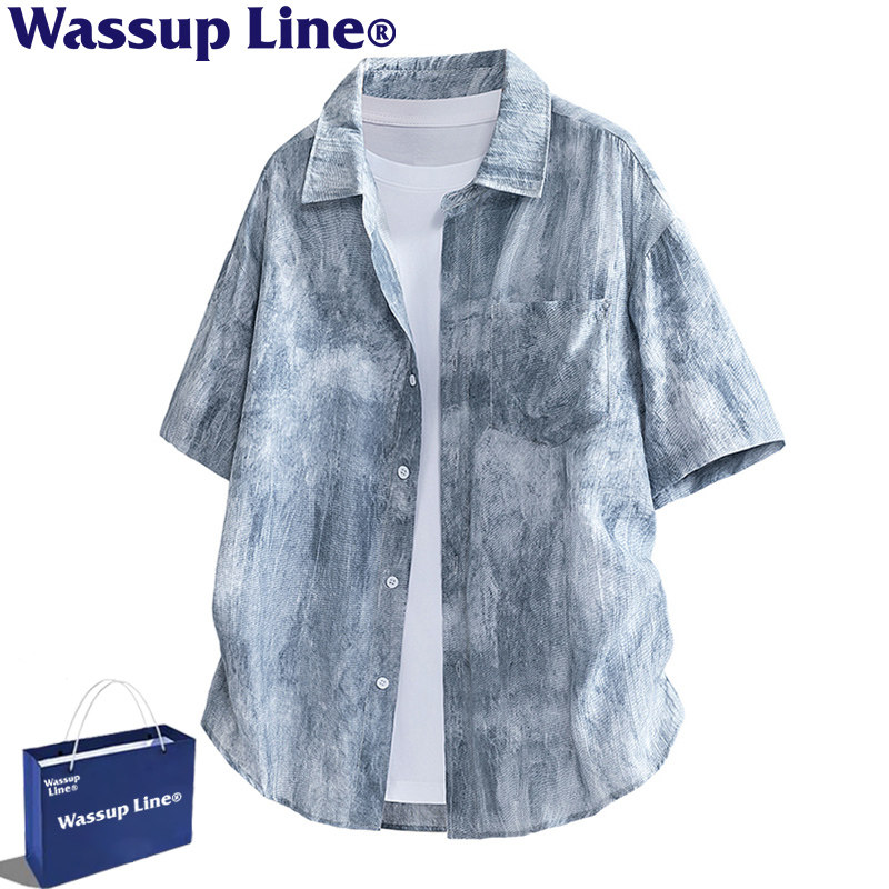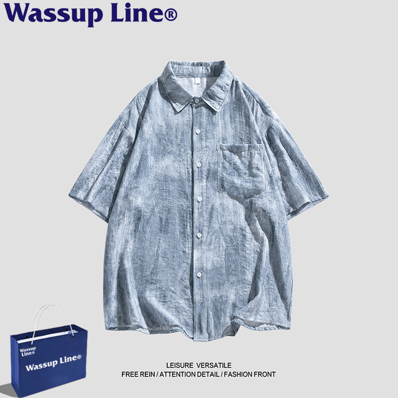 WASSUP Line潮牌夏季扎染短袖衬衣男款宽松百搭休闲复古上衣衬衫