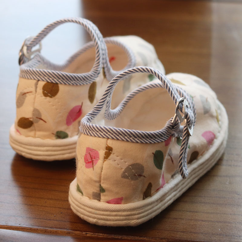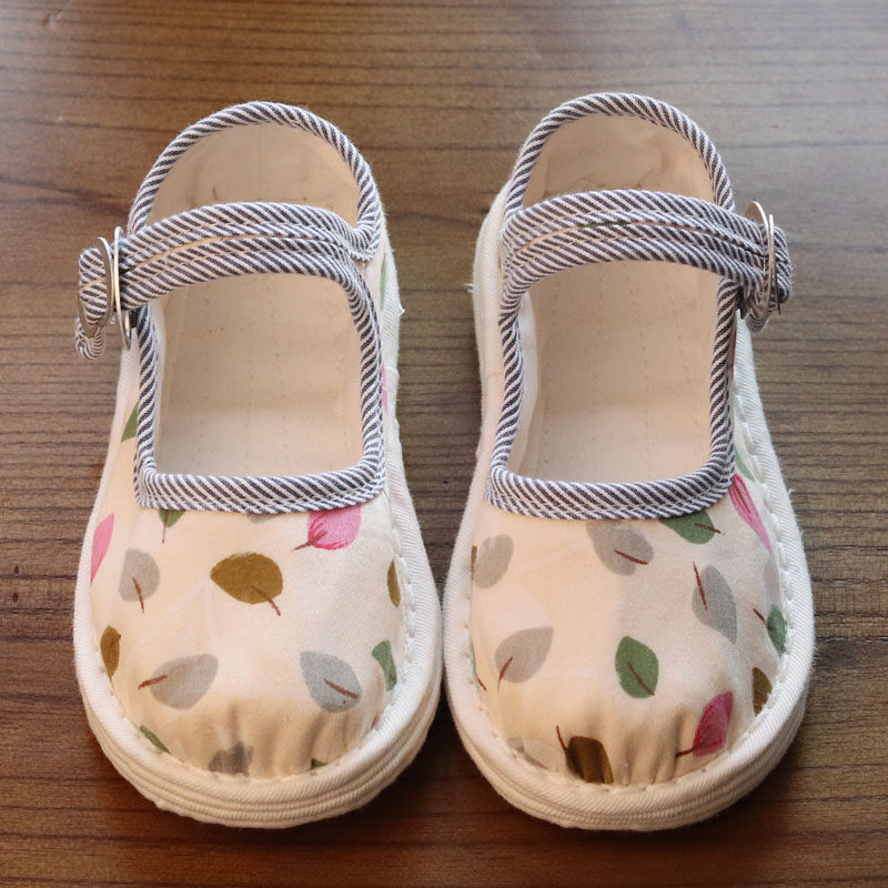 新款纯手工千层底儿童布鞋 宝宝学步鞋 白色树叶透气吸汗单鞋子