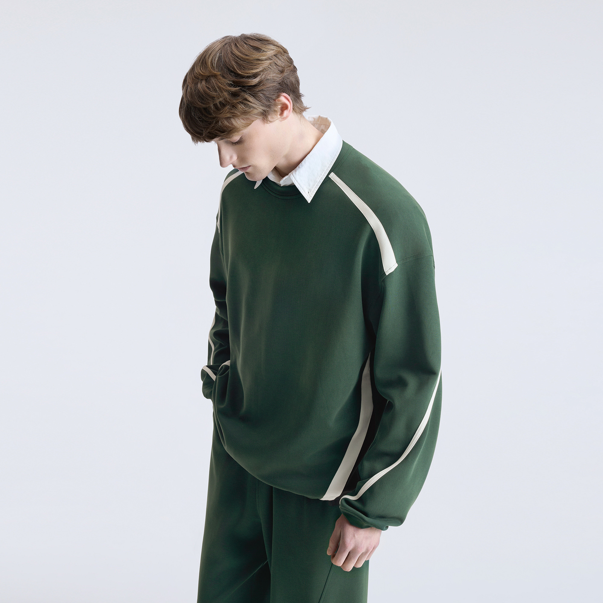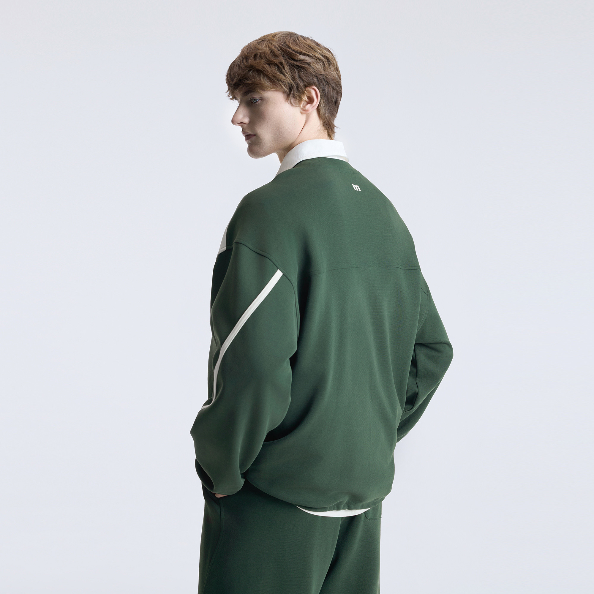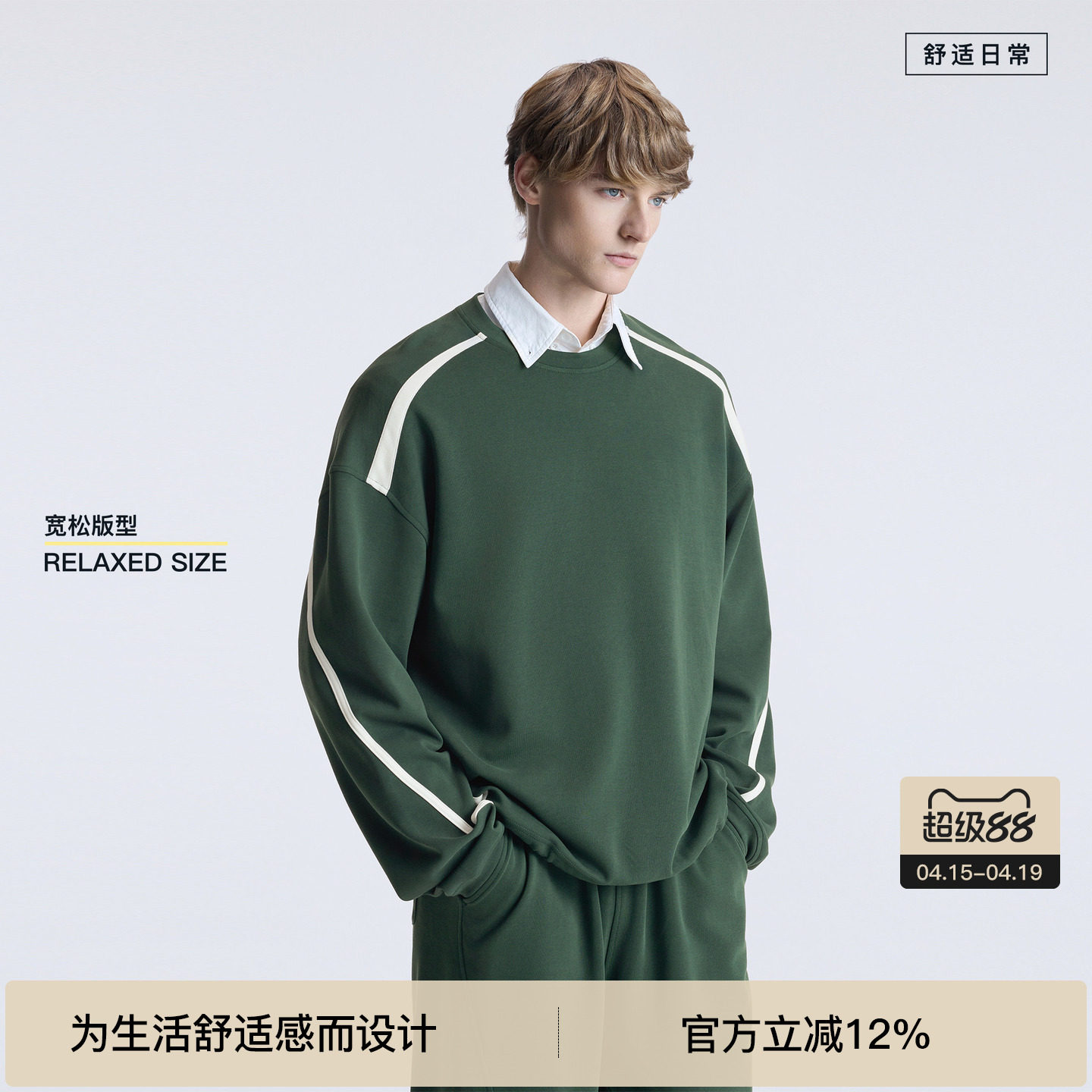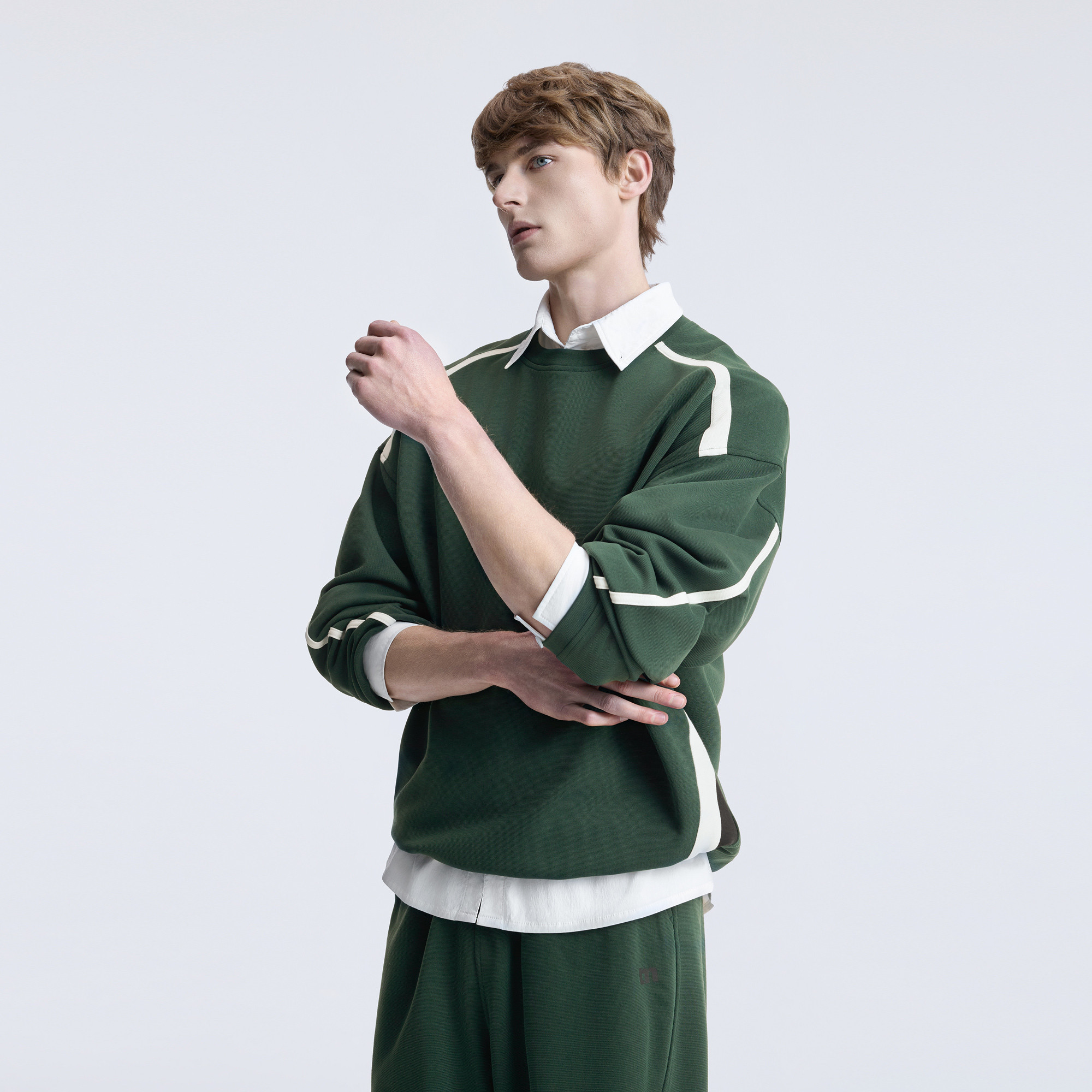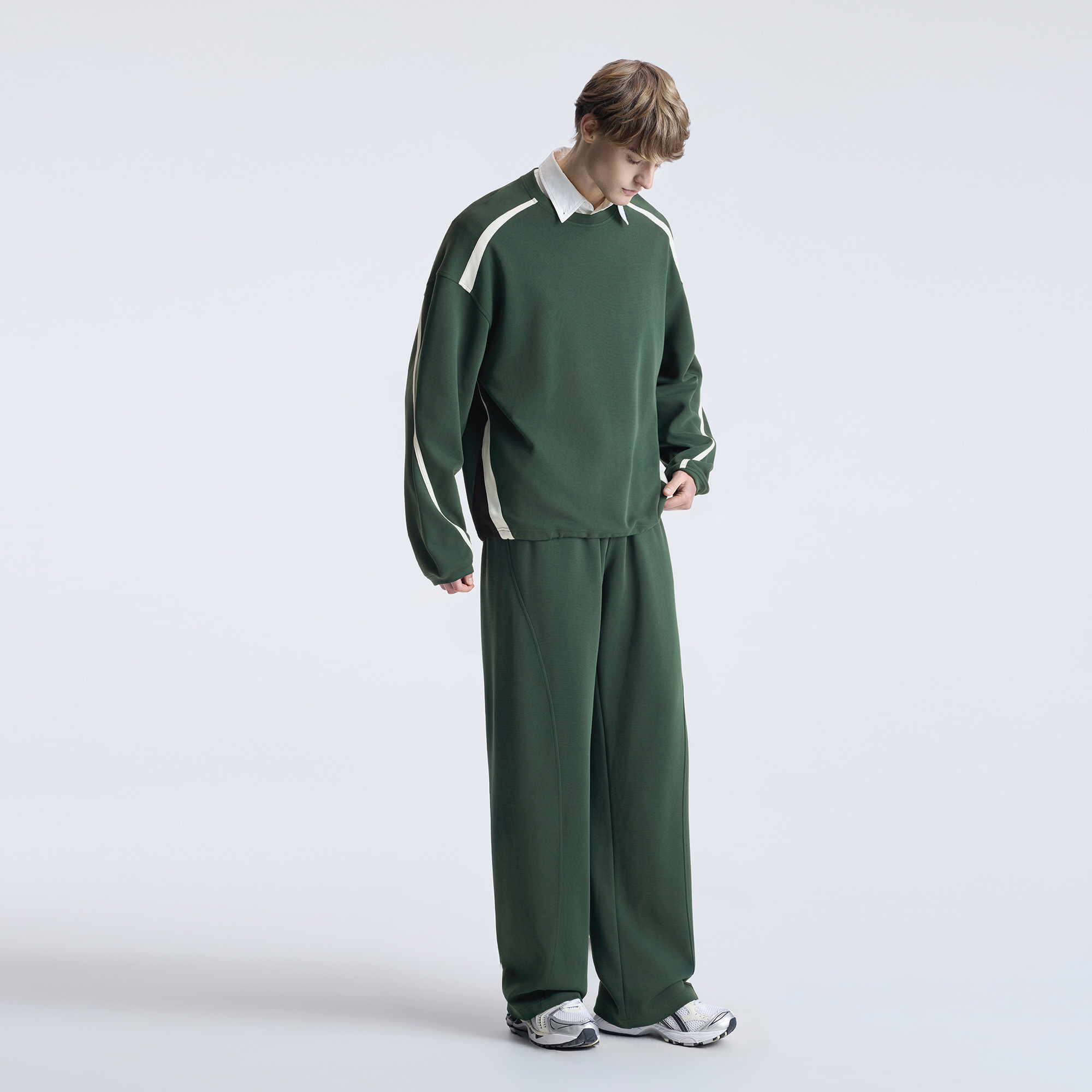 BODYDREAM撞色卫衣男款2026新款老钱针织圆领上衣 烟松绿运动套装