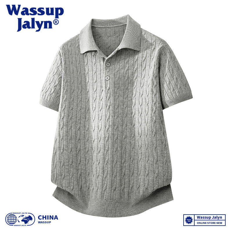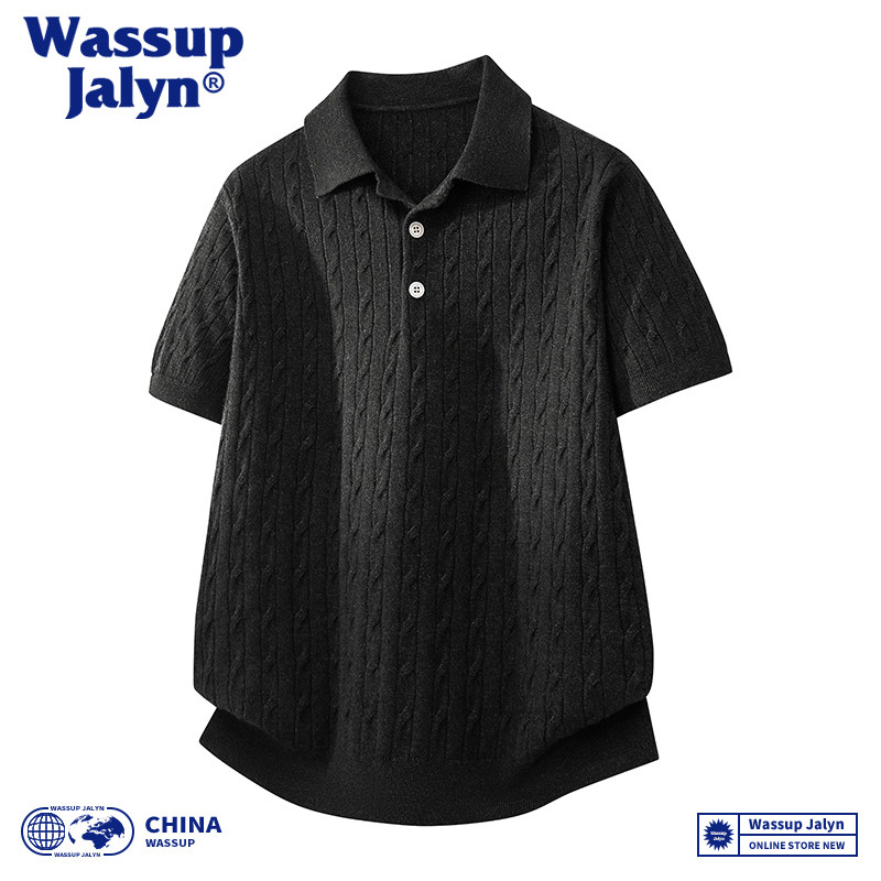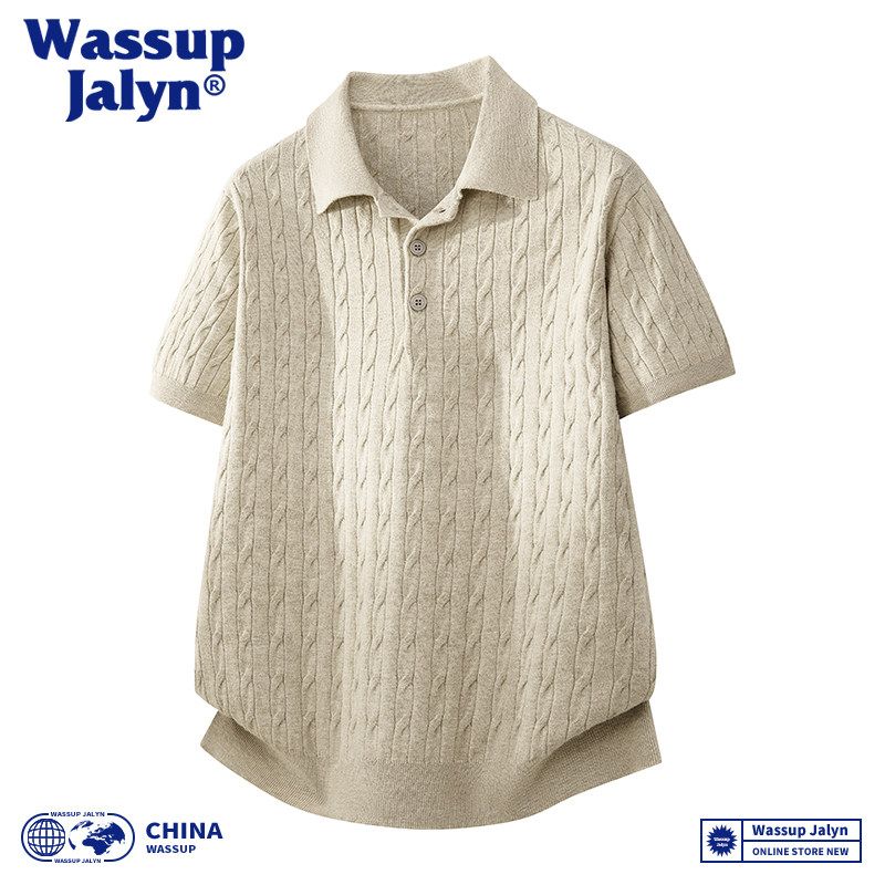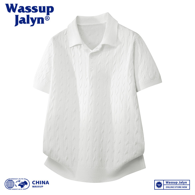--------------------- WASSUP JALYN街头复古扭花针织短袖POLO衫男潮牌宽松情侣T恤上衣 【原售价】82.23元 【现售价】69.83元 【推荐理由】