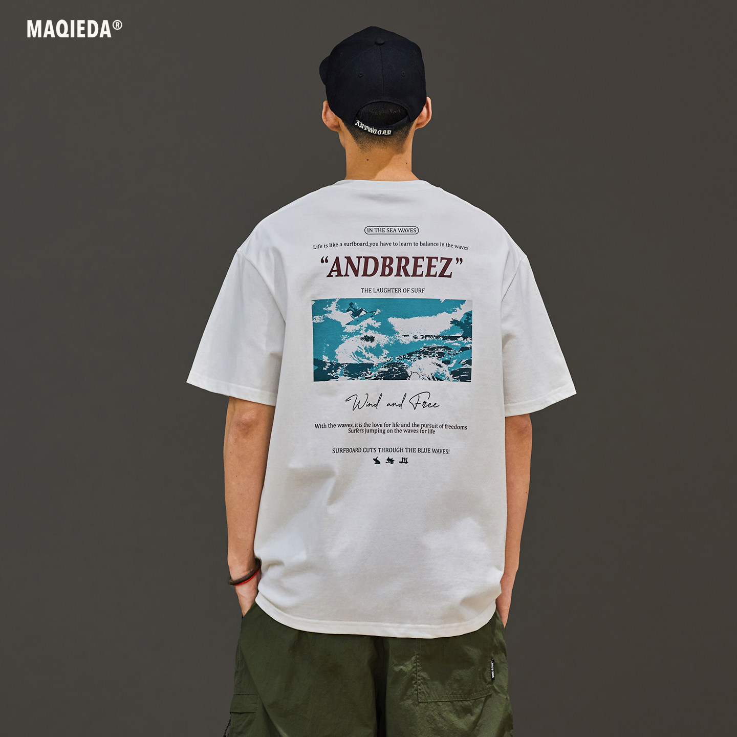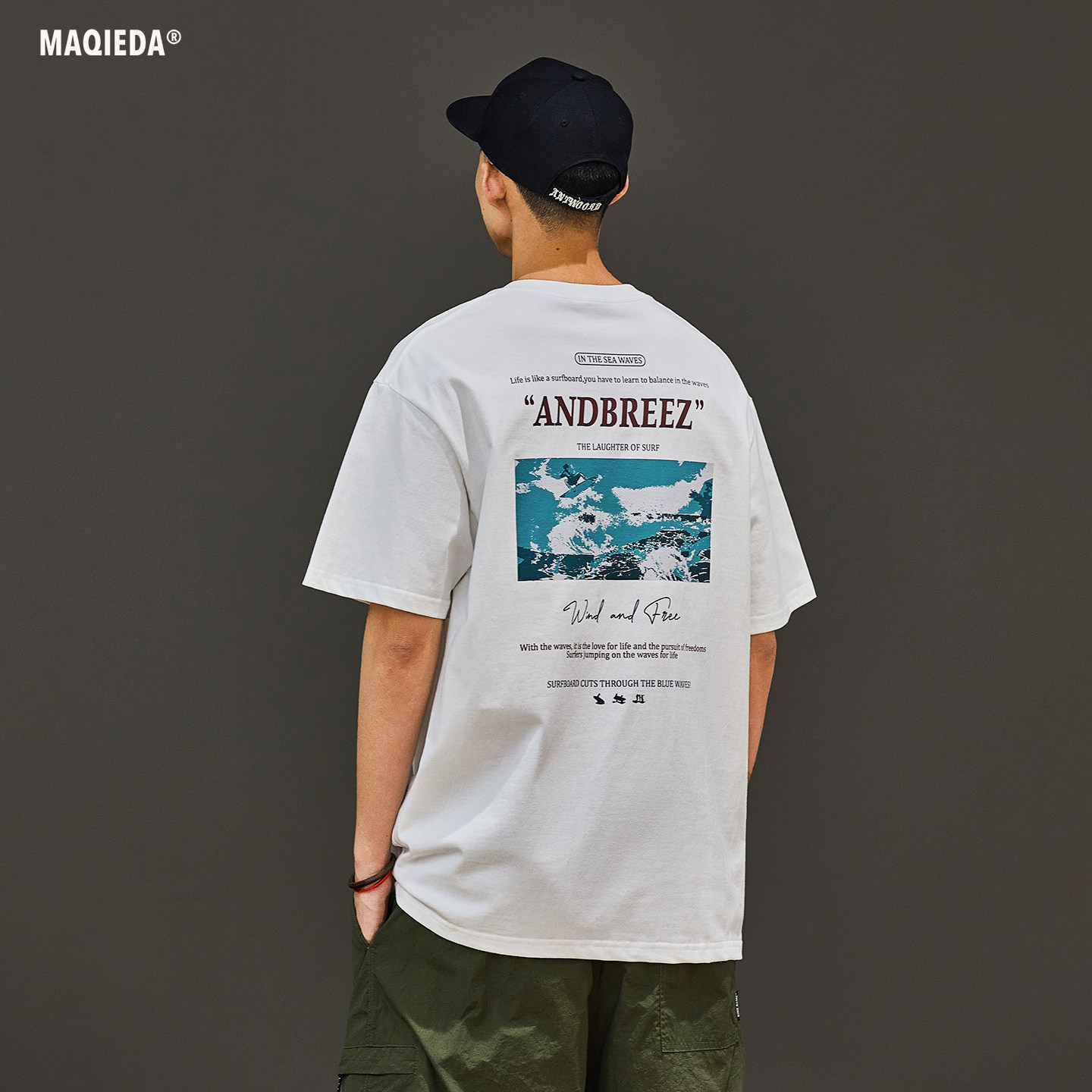 --------------------- 夏季设计感冲浪印花男生休闲短袖美式情侣宽松T恤纯棉小众五分袖 【原售价】108元 【现售价】68.6元 【推荐理由】
