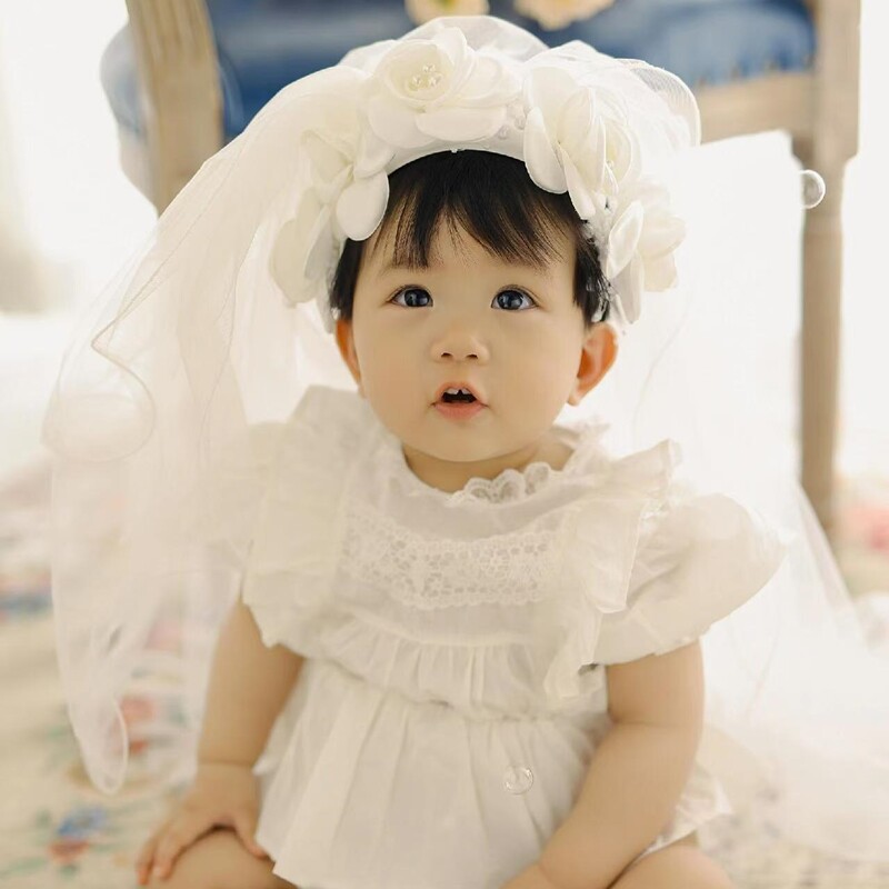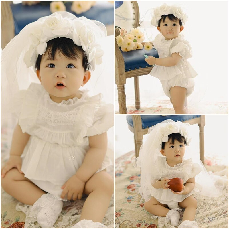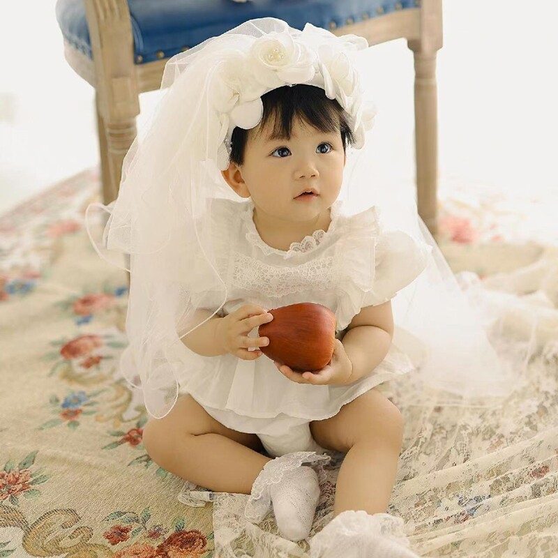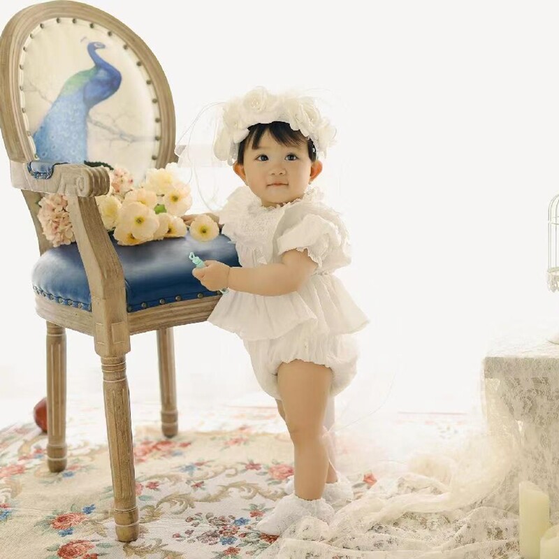 淘宝儿童摄影服装宝宝百天照1-2岁照拍照服装复古法式小婚纱公主头纱