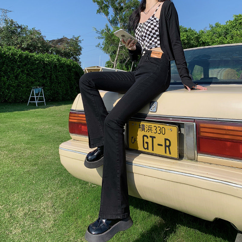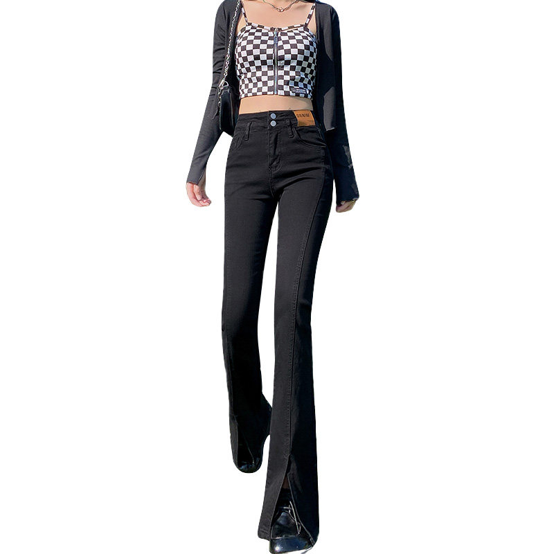 黑色开叉微喇牛仔裤女秋冬2025年新款高腰修身显瘦春秋拖地喇叭裤