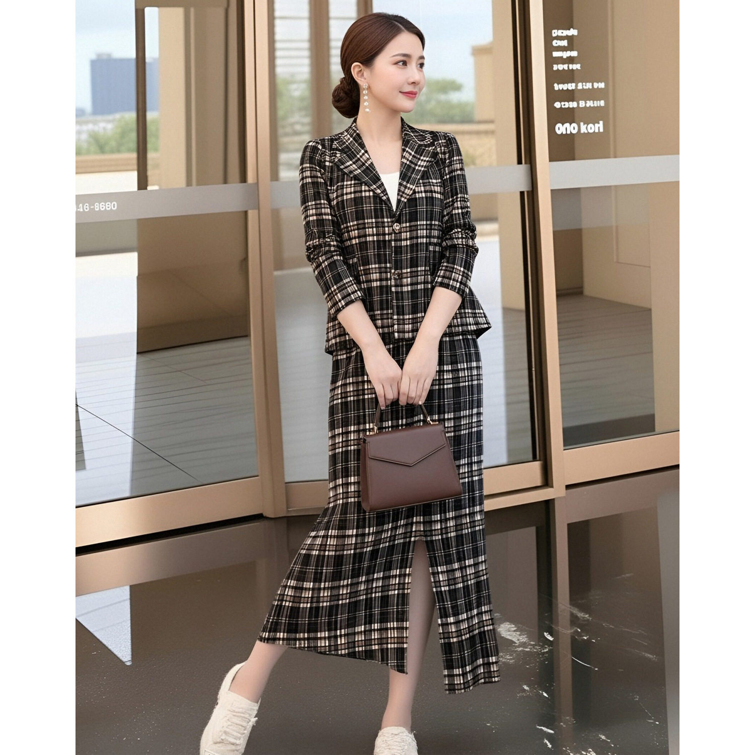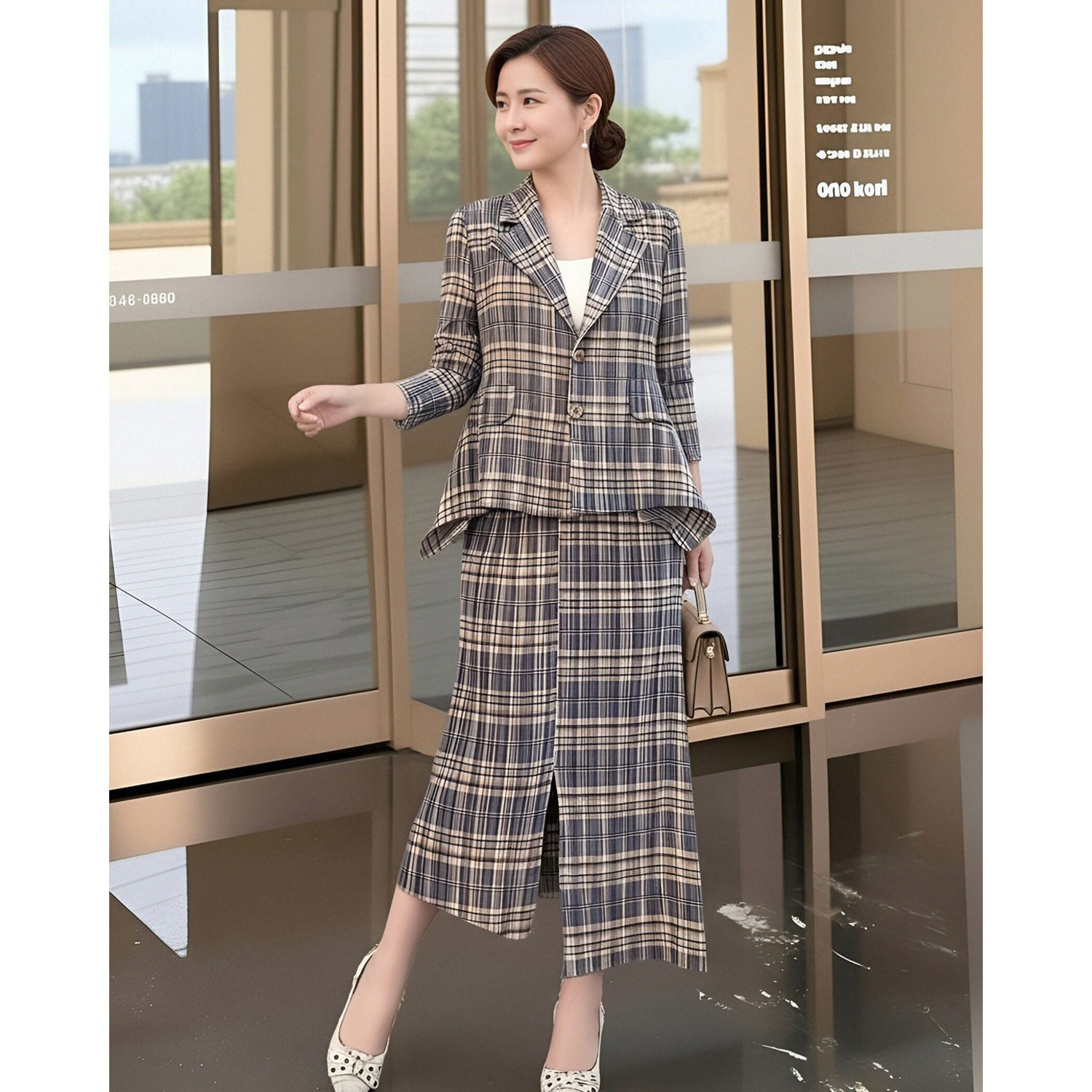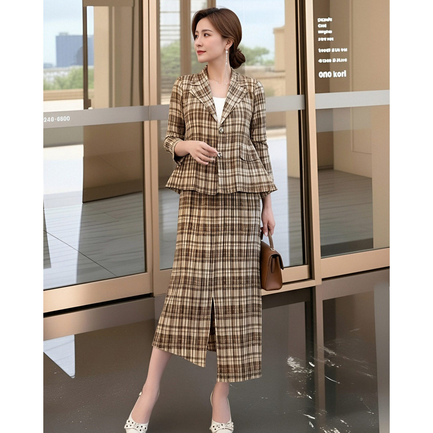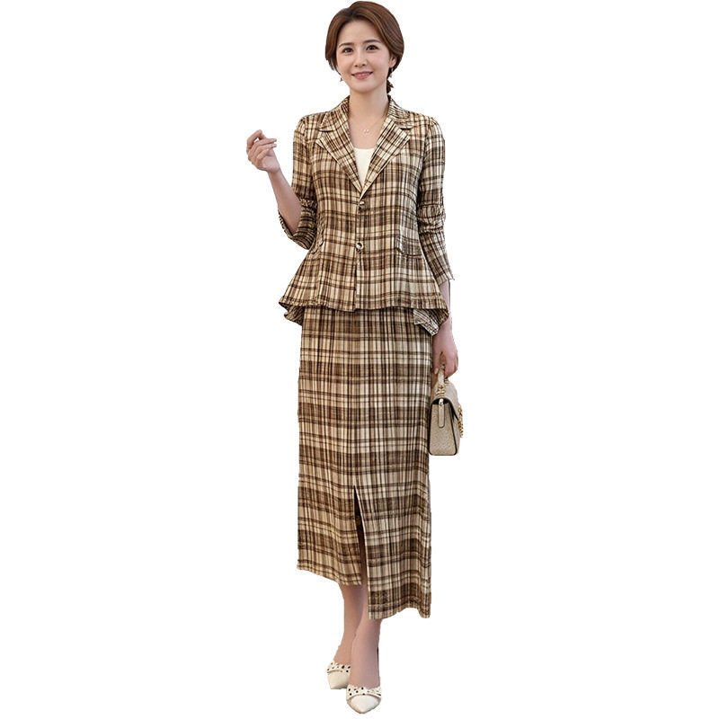 --------------------- 春装新款中年女装气质格纹小西装套装 收腰显瘦开叉半身裙两件套 【原售价】599元 【现售价】233元 【推荐理由】