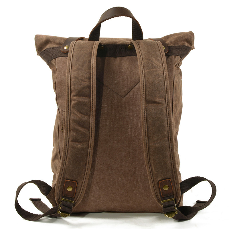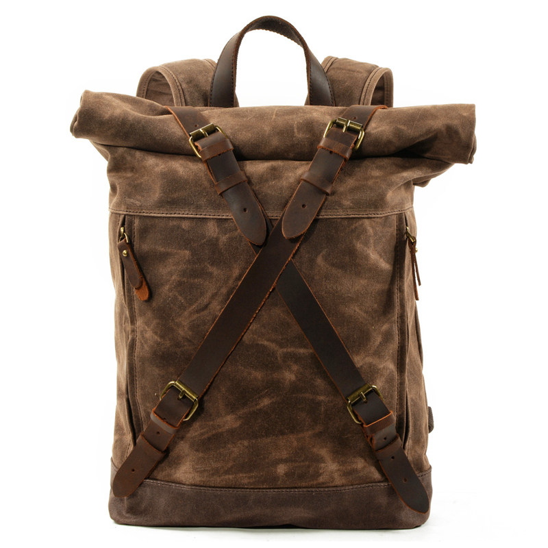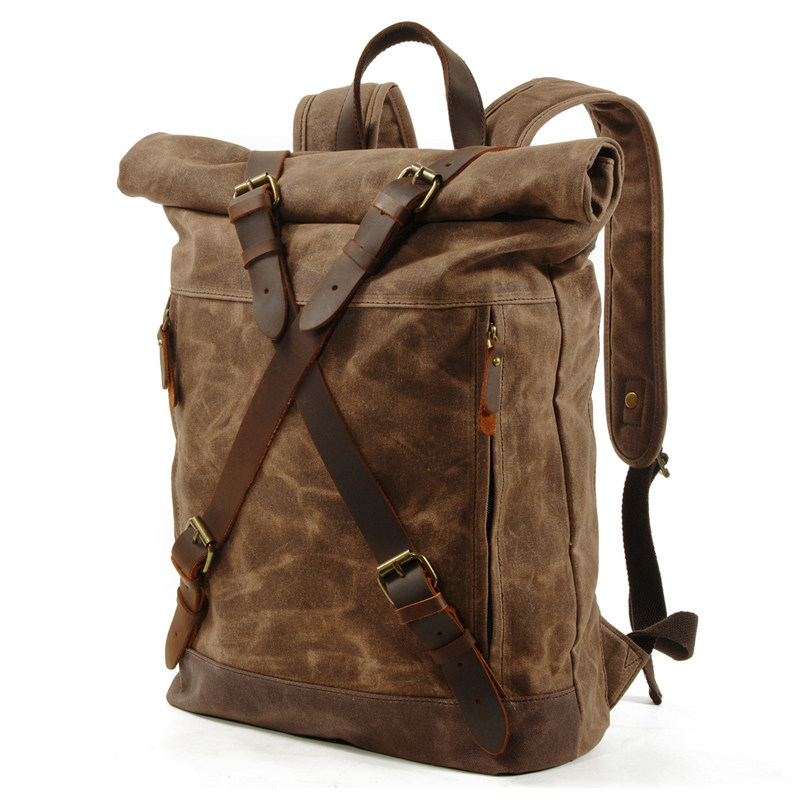 奇古西新潮日系机能双肩包学院风书包休闲电脑包复古蜡帆布旅行包