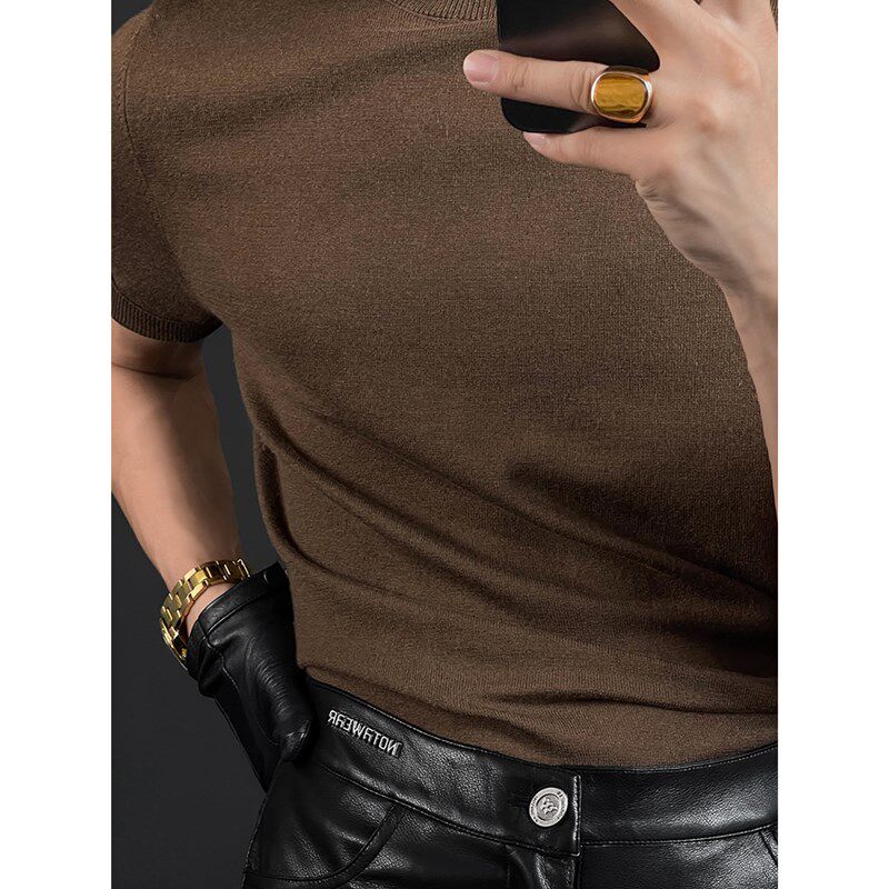 龙叨叨秋季新款潮流纯色复古高级感半高领百搭打底针织线衫T恤