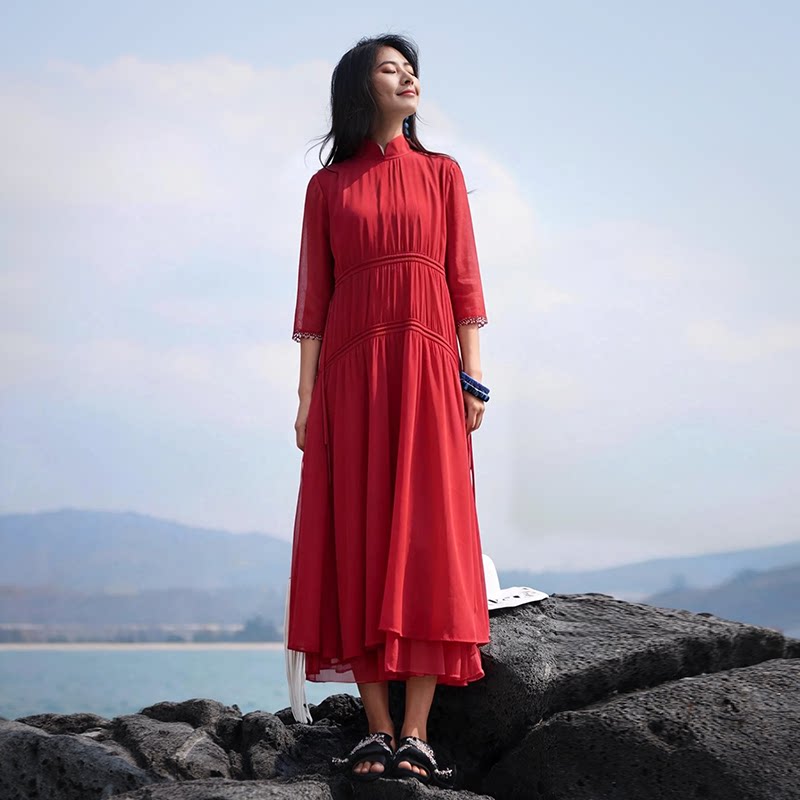 --------------------- 杨丽萍官方原创设计雀云裳民族风新中式风抽绳立领连衣裙小白裙女 【原售价】499元 【现售价】499元 【推荐理由】