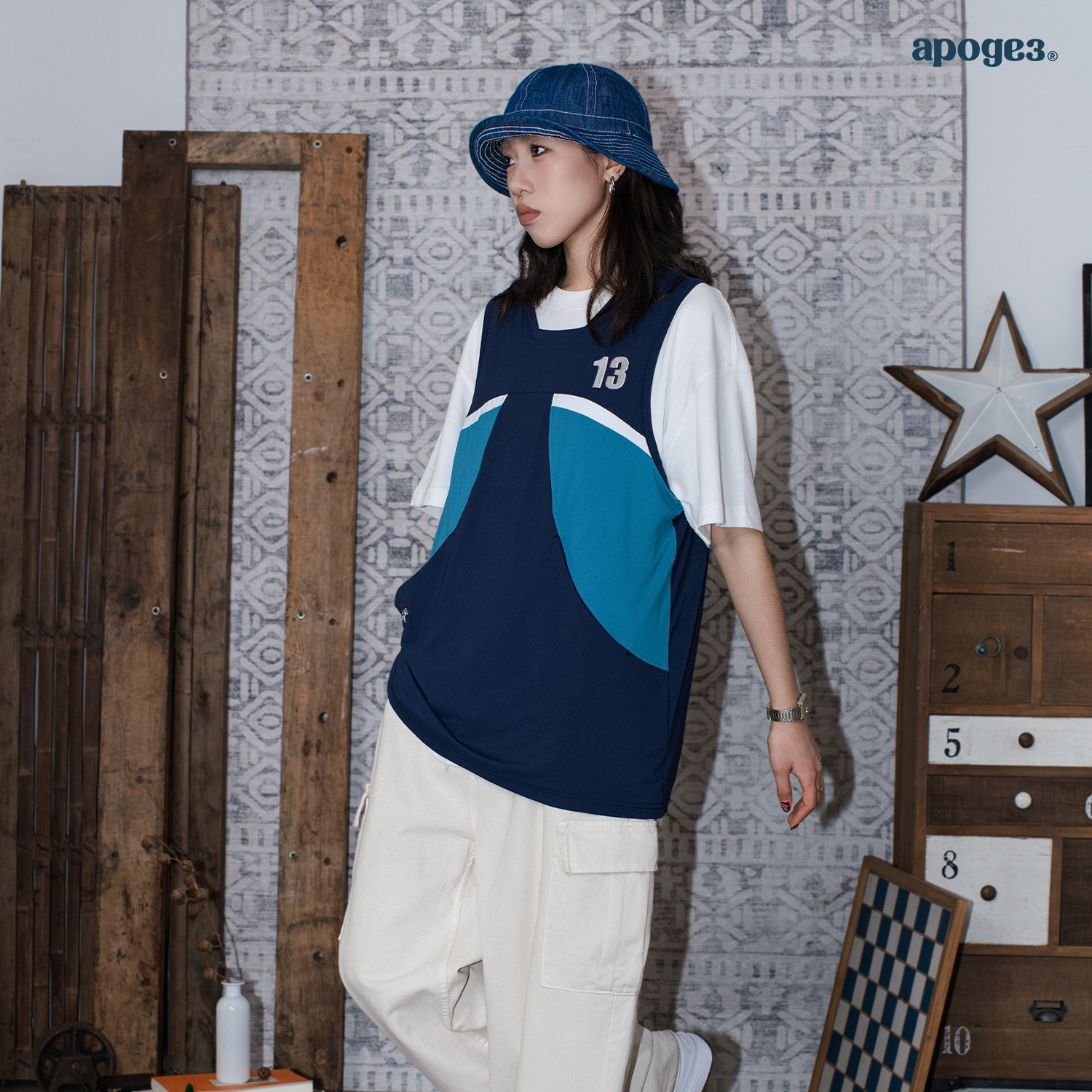 APOGE3阿保机 流隐球衣泽西风运动背心男女同款撞色拼接宽松健身