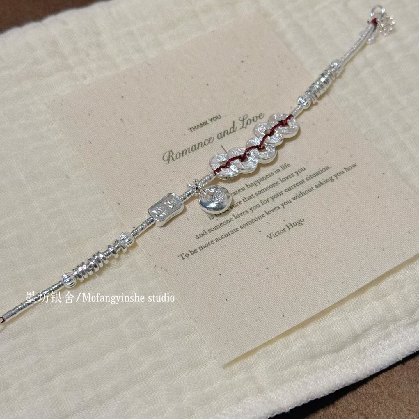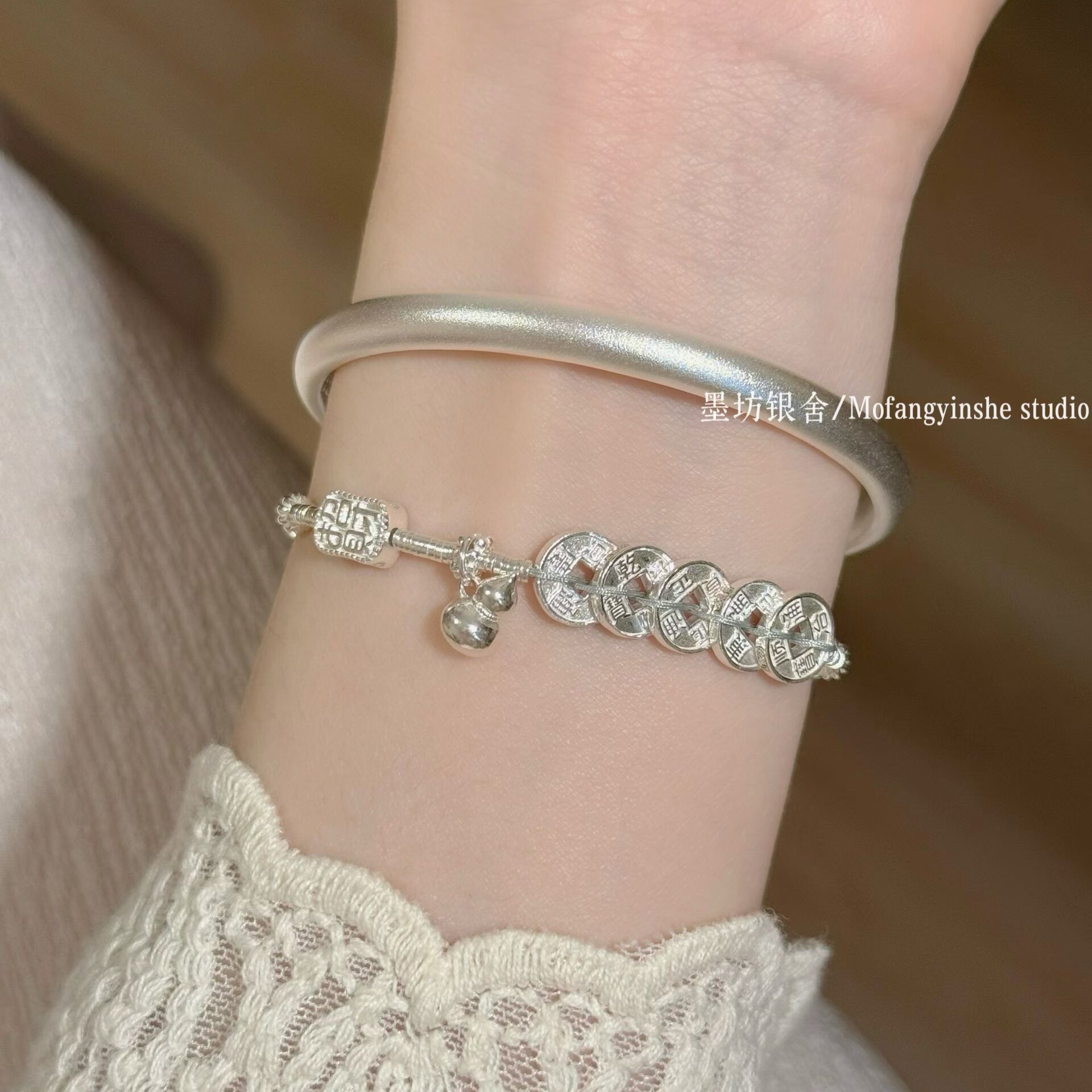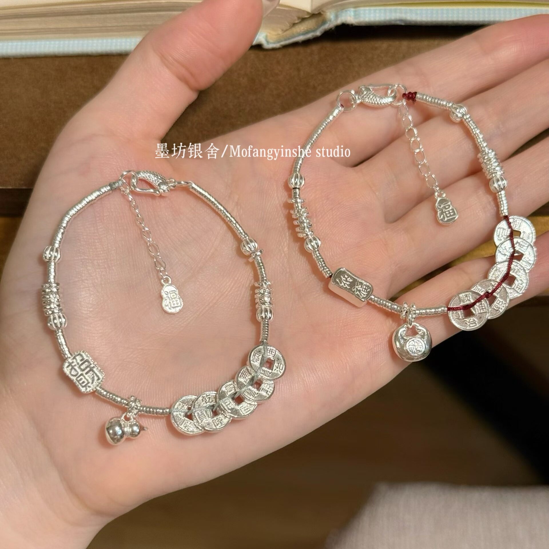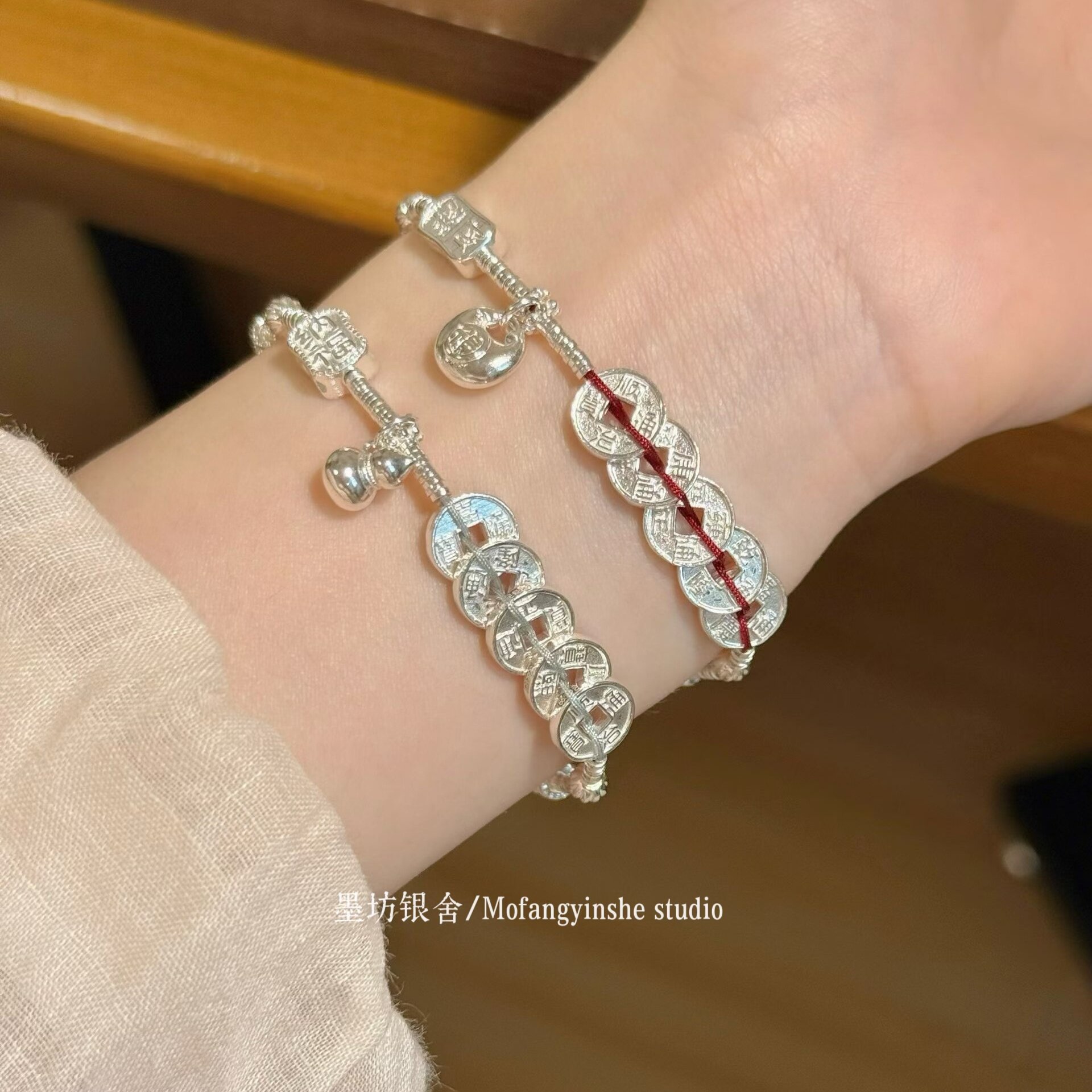 --------------------- 足银999五帝钱手链招财葫芦小胖福手工纯银盘缠手串小众高级礼物 --------------------- --------------------- 【原价】457元 【券后价】393元