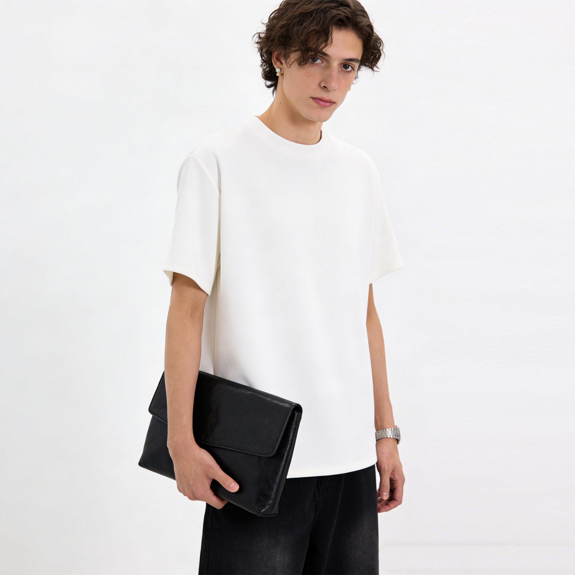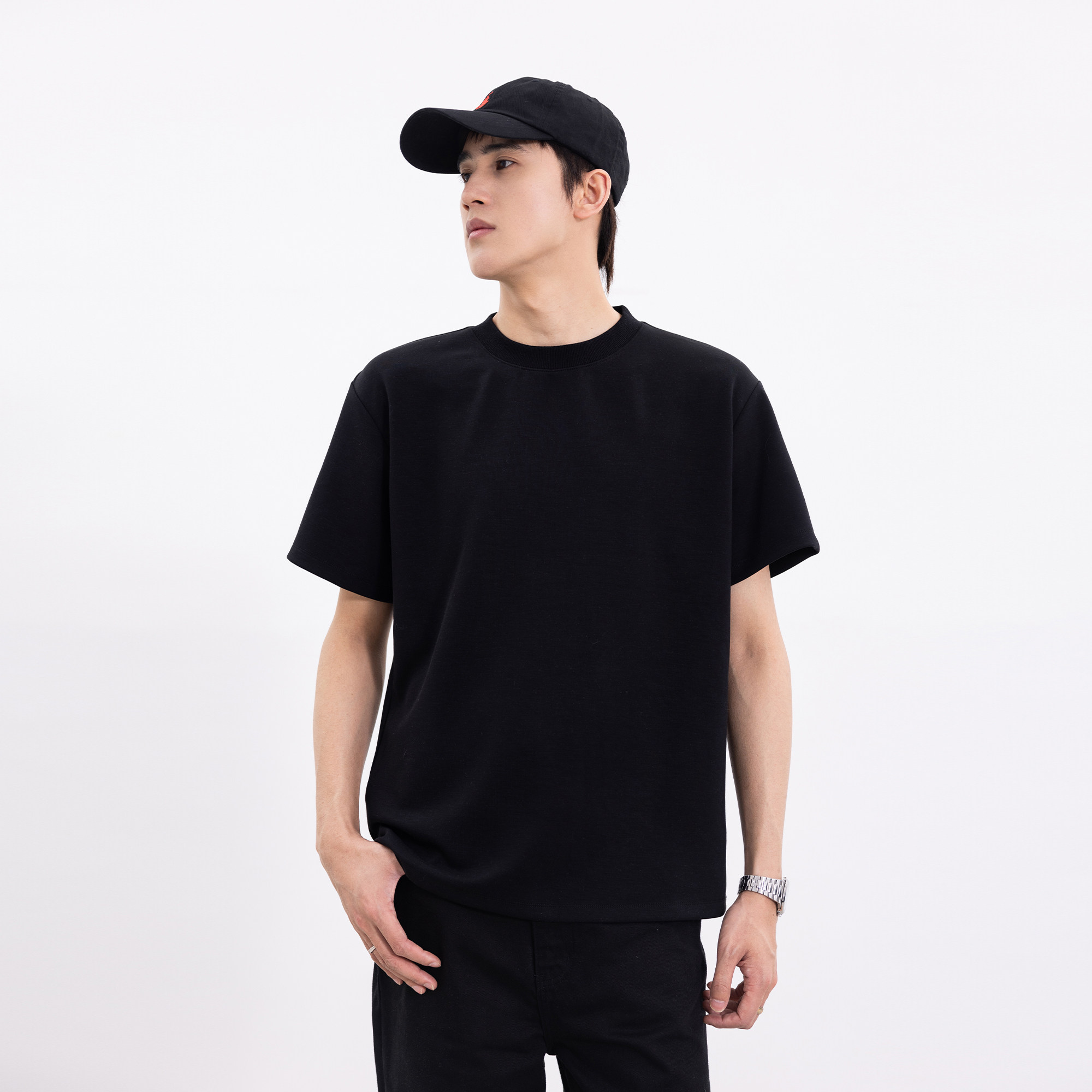 淘宝S123 春夏row风重磅320克莫代尔空气层基础打底短袖休闲T恤男