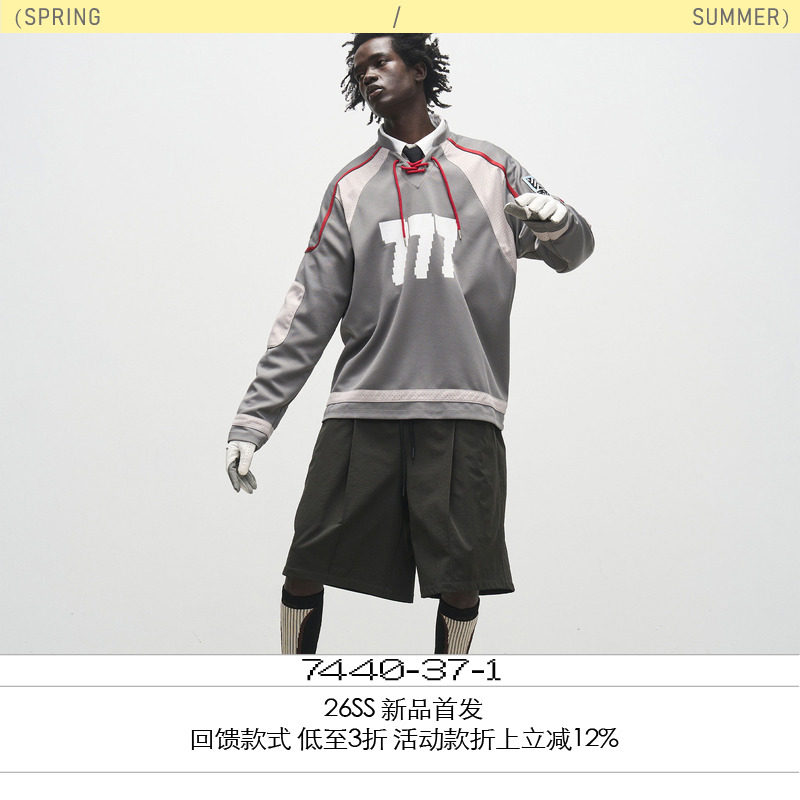 7440 37 1 「Hamin李河民同款」 777 双色穿绳拼接冰球服长袖T恤