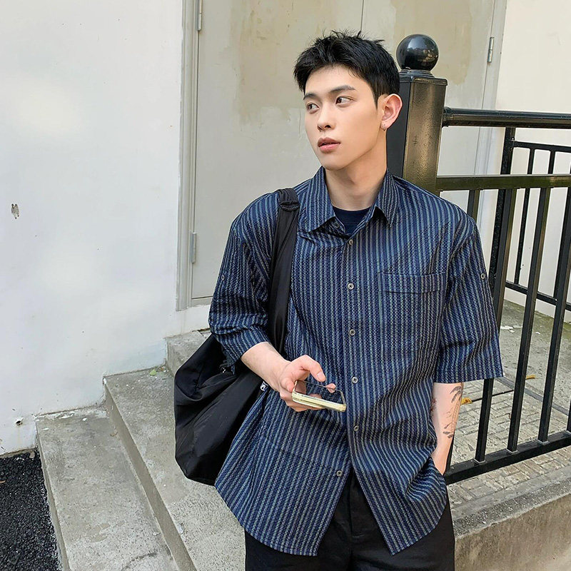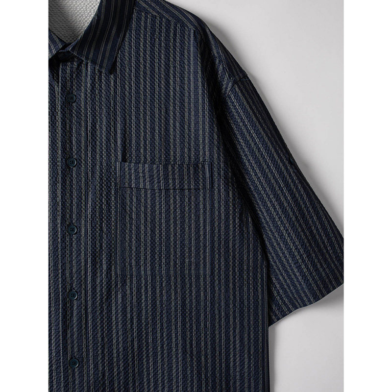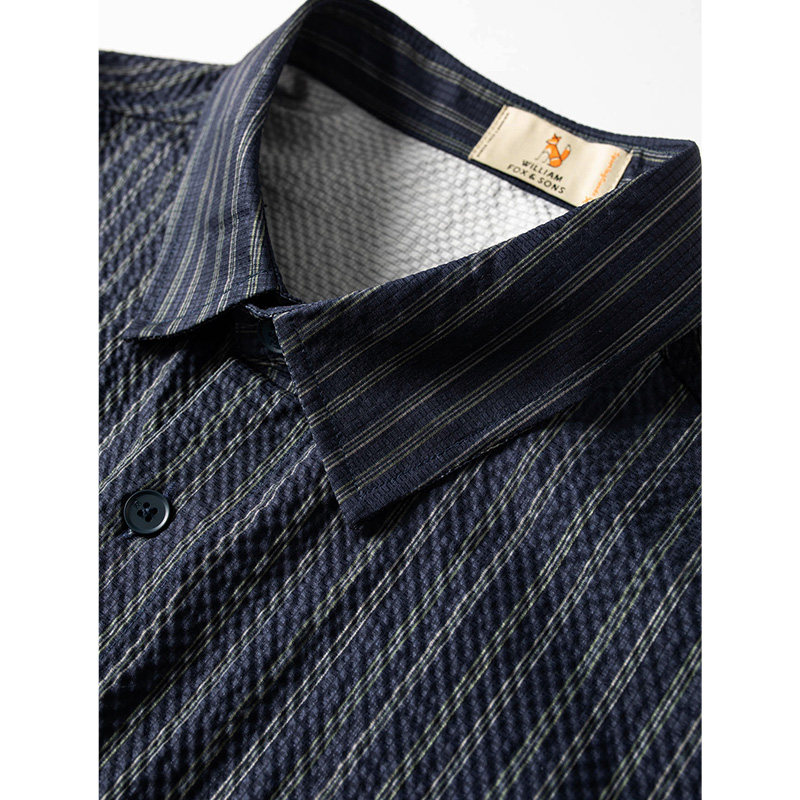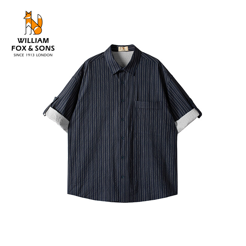淘宝英国小狐狸2026夏季透气可翻折飘带定织提花泡泡纱情侣短袖衬衫男