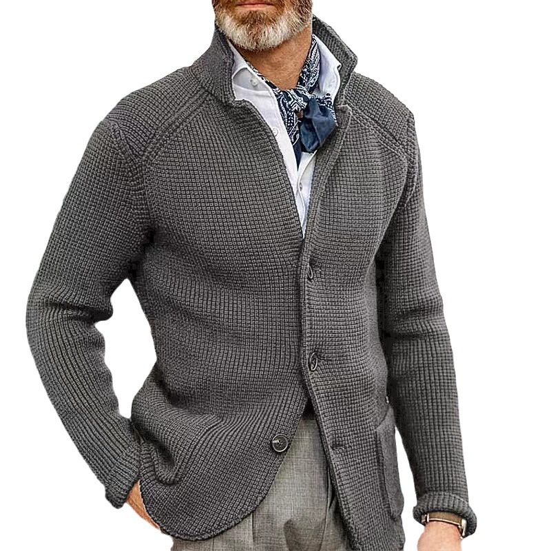 秋冬纯色立领单排扣修身针织大码长袖外套男Men's knitted jacket