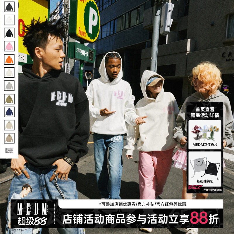 淘宝MEDM国潮基础帽衫11色连帽卫衣男春秋季美式街头宽松休闲外套上衣
