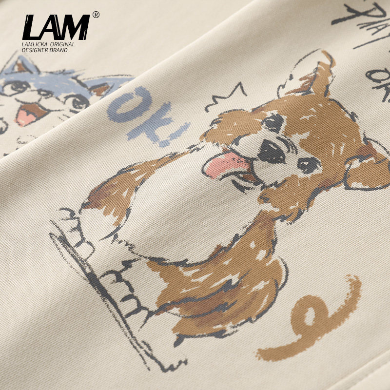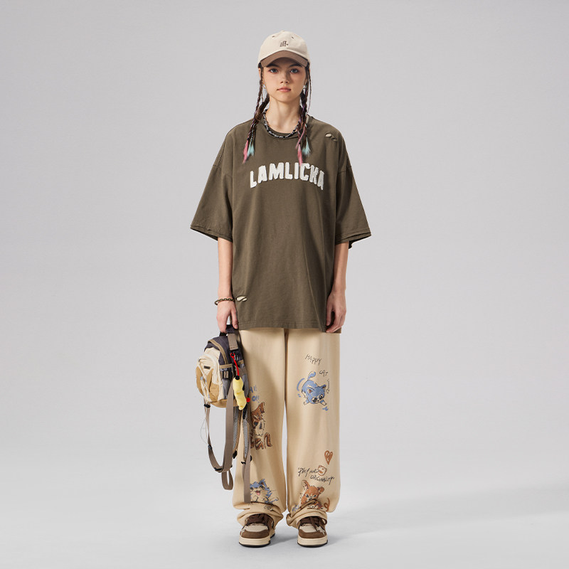 LAMLICKA国潮卡通印花休闲裤男初秋新品设计感青少年百搭直筒卫裤
