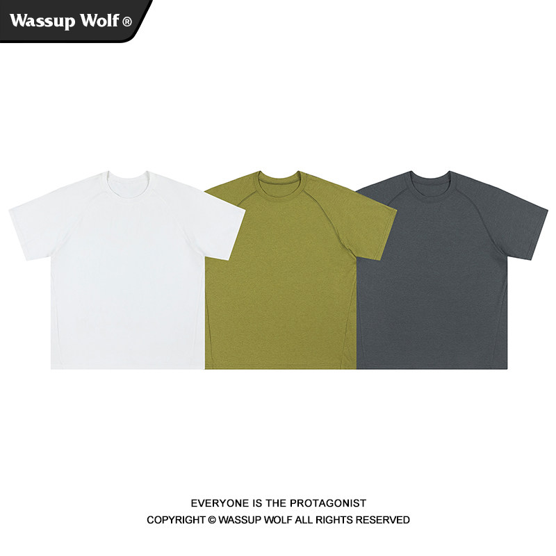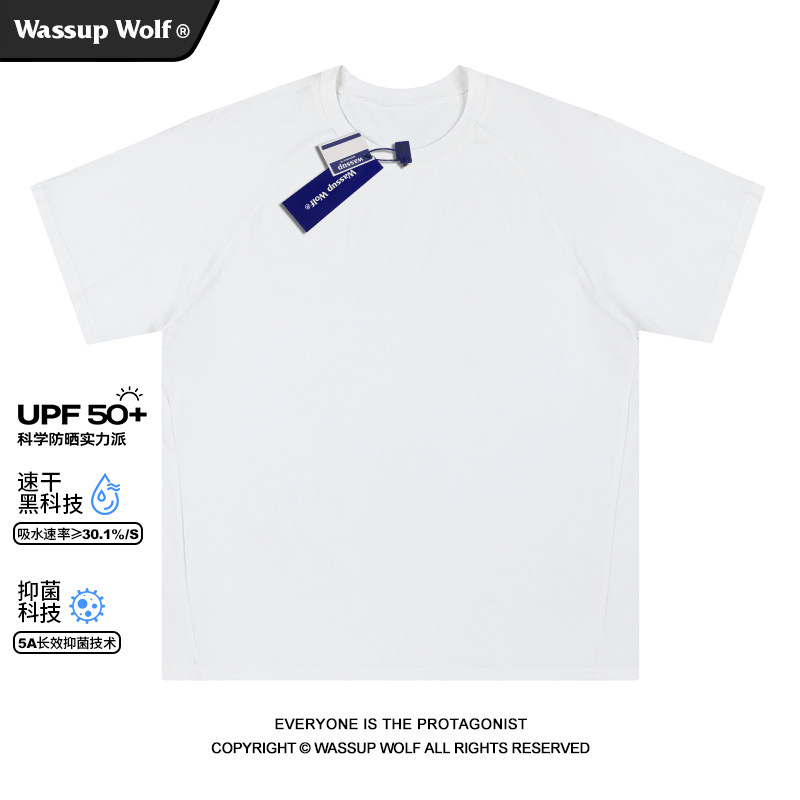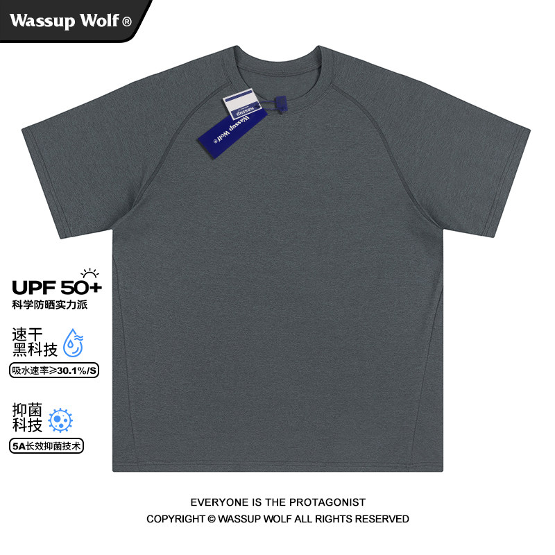 Wassup Wolf速干抗菌凉感运动短袖T恤男纯色夏季UPF50+防晒五分袖